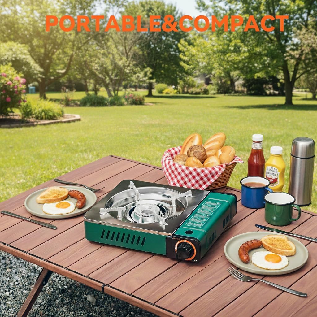 COMPACT AND SLEEK DESIGN: A must-have for camping and backpacking, this stove is designed for portability. The small butane stove has a classical green color and modern look, which is perfect for camping lover. It’s also suitable for home cooking such as a nice breakfast or enjoying hotpot with family.