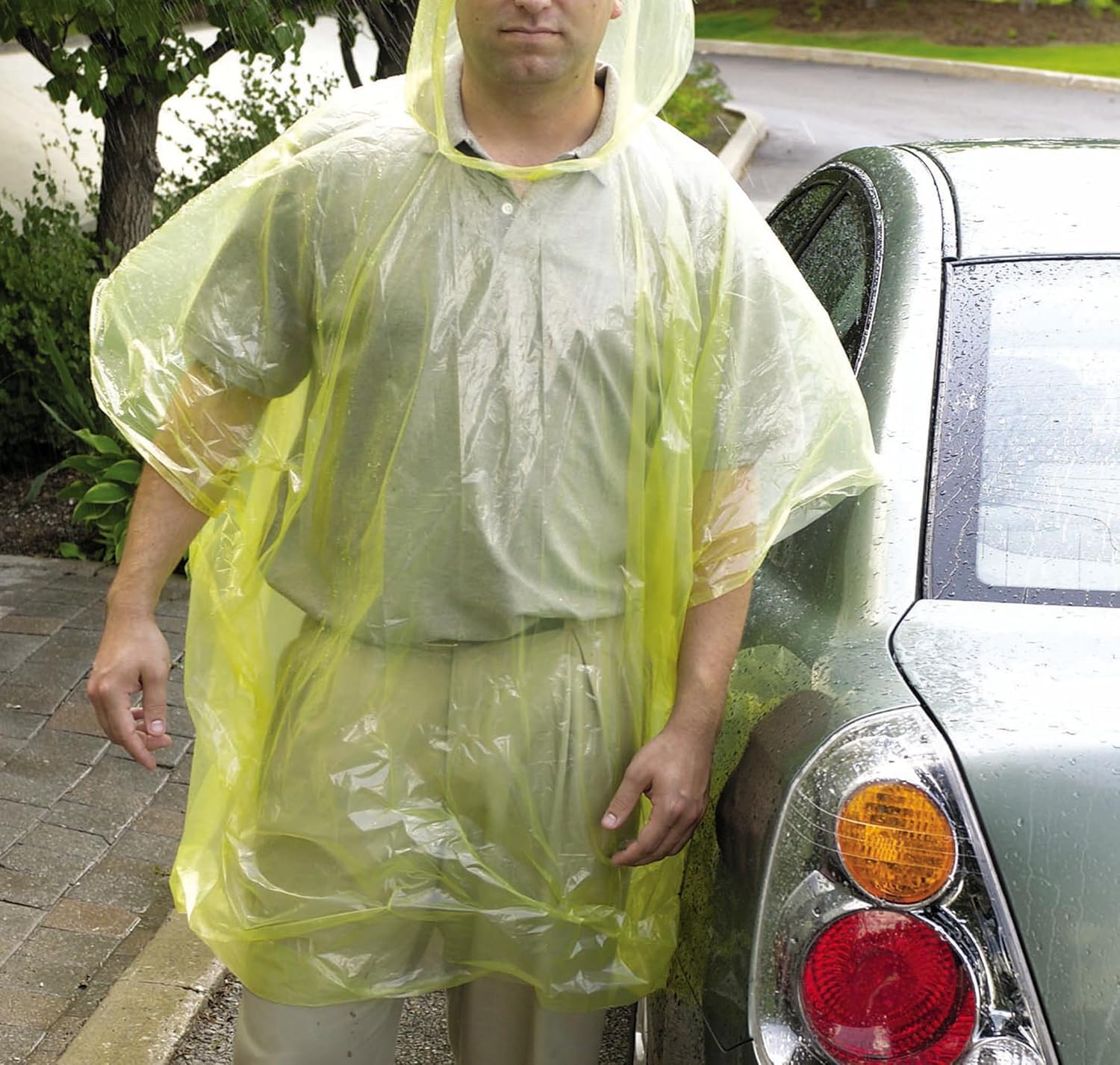 Comprehensive Travel Emergency Tools: Includes 8-foot, 10-gauge jumper cables, heavy-duty tow strap (10,000 lbs capacity), bright LED flashlight with 3 AAA batteries, protective work gloves, emergency rain poncho, and a first aid kit.