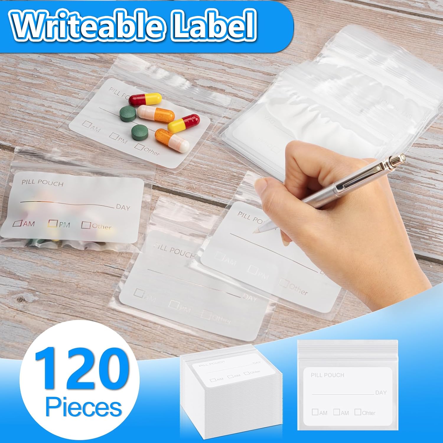 【Convient & Protection】 -There are 4 mesh pocket inside the mini first aid kit. You can put some small medicine, such as band-aid, pain-killer, etc. And daily pill organizer also fit in. 120 PSC writable pill bags is clear, you can see what medication you’re keeping and label it just to be safe, convenient to track your pill consumption