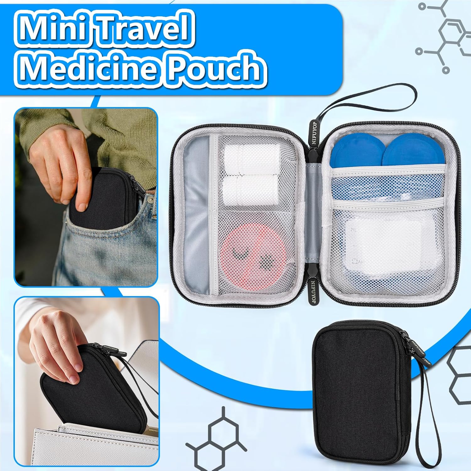【High Quality Medical Bag】 -Our micro medicine case is made from polyester material, durable and splash water. High quality zipper and wear-resistant to serve you for years. Our re-sealable, reusable clear plastic pill baggies are made of low-density polyethylene. They do not contain latex and are BPA-free