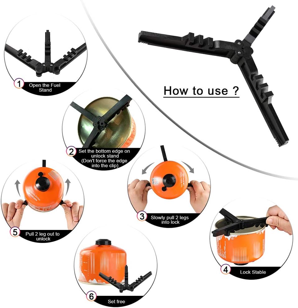 2 Lightweight And Compact Fuel Can Stand-fuel canister stand can be fold down nice and compactly to small size, take up little room. Easy to storage, you could keep it inside pot, cup, Great lightweight backpacking and camping accessory.