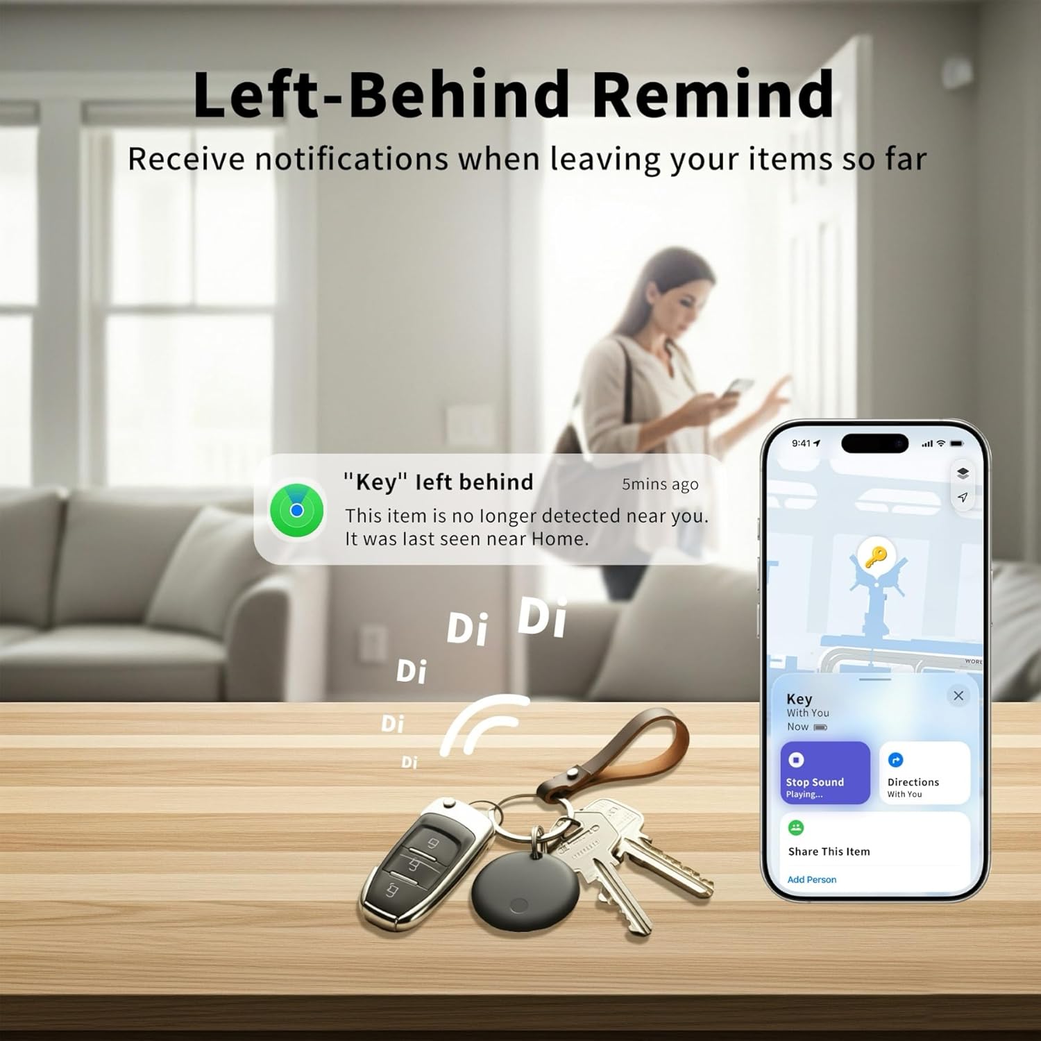 LOUD ALARM & LONG BATTERY | SMART TAG FOR ESSENTIALS- Misplaced your keys or wallet? Don’t just see it on a map—make it ring! Activate the loud alarm from your phone to quickly find items hiding nearby. Powered by stable Bluetooth 5.2 technology, the included CR2032 battery lasts over a year and is easily replaceable, ensuring your smart tracker is always ready when you need it.