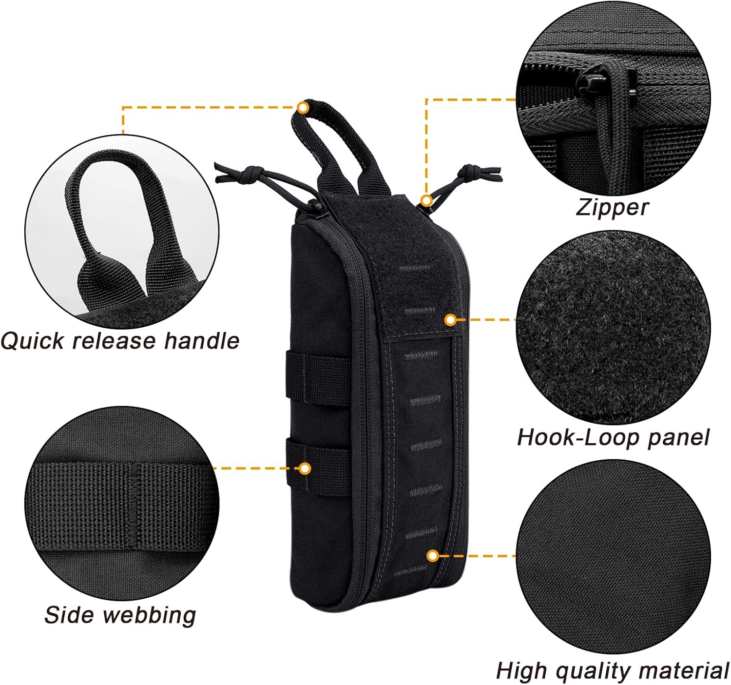【Built with Durability】 Constructed from 500D nylon material,featuring reinforced stitching,and smooth YKK zippers.This Ifak pouch is designed to offer long-lasting performance for demanding situations like wilderness camping, hiking,and emergency response.