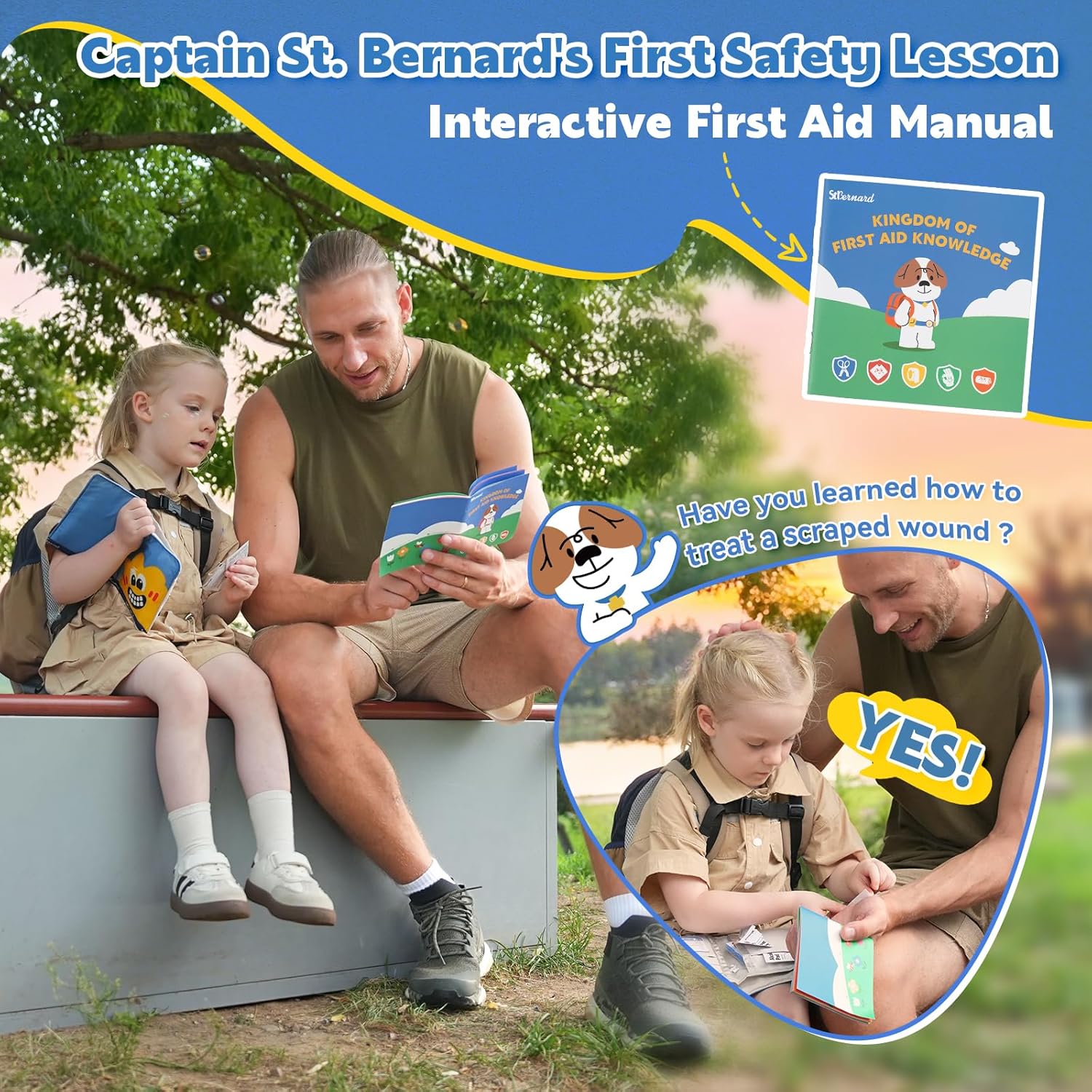 💟[[Captain St. Bernard Leads the First Lesson] Meet Captain St. Bernard—the friendly pup on our logo, guiding kids through every page of the cartoon manual. This beloved mascot turns first aid into a fun adventure, teaching little ones to stay calm and handle boo-boos step-by-step. More than a kit: it’s their first safety class, led by your child’s new favorite St. Bernard friend