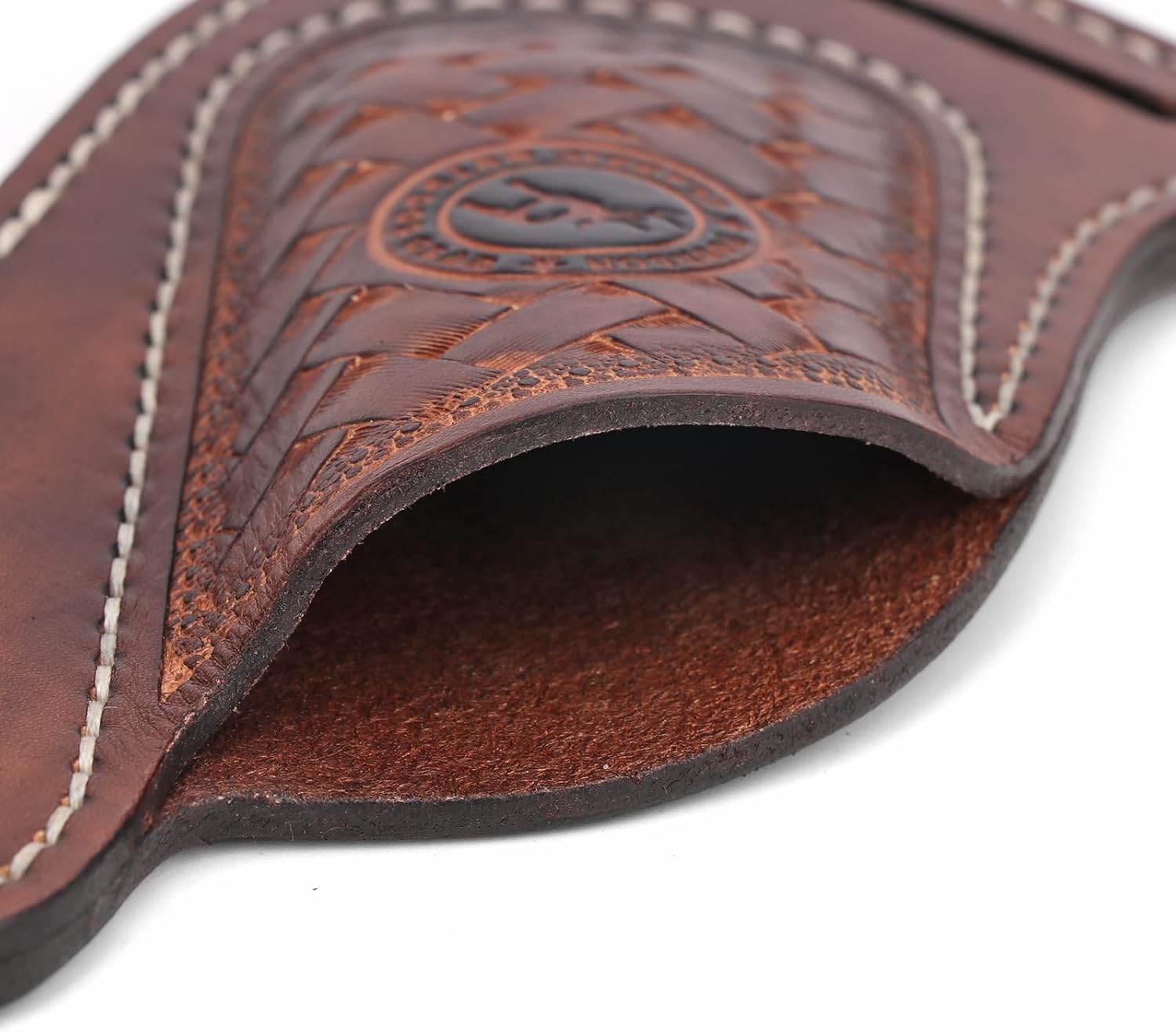 Tourbon folding knife sheath made of thick genuine leather, great stitching, tough and stylish.