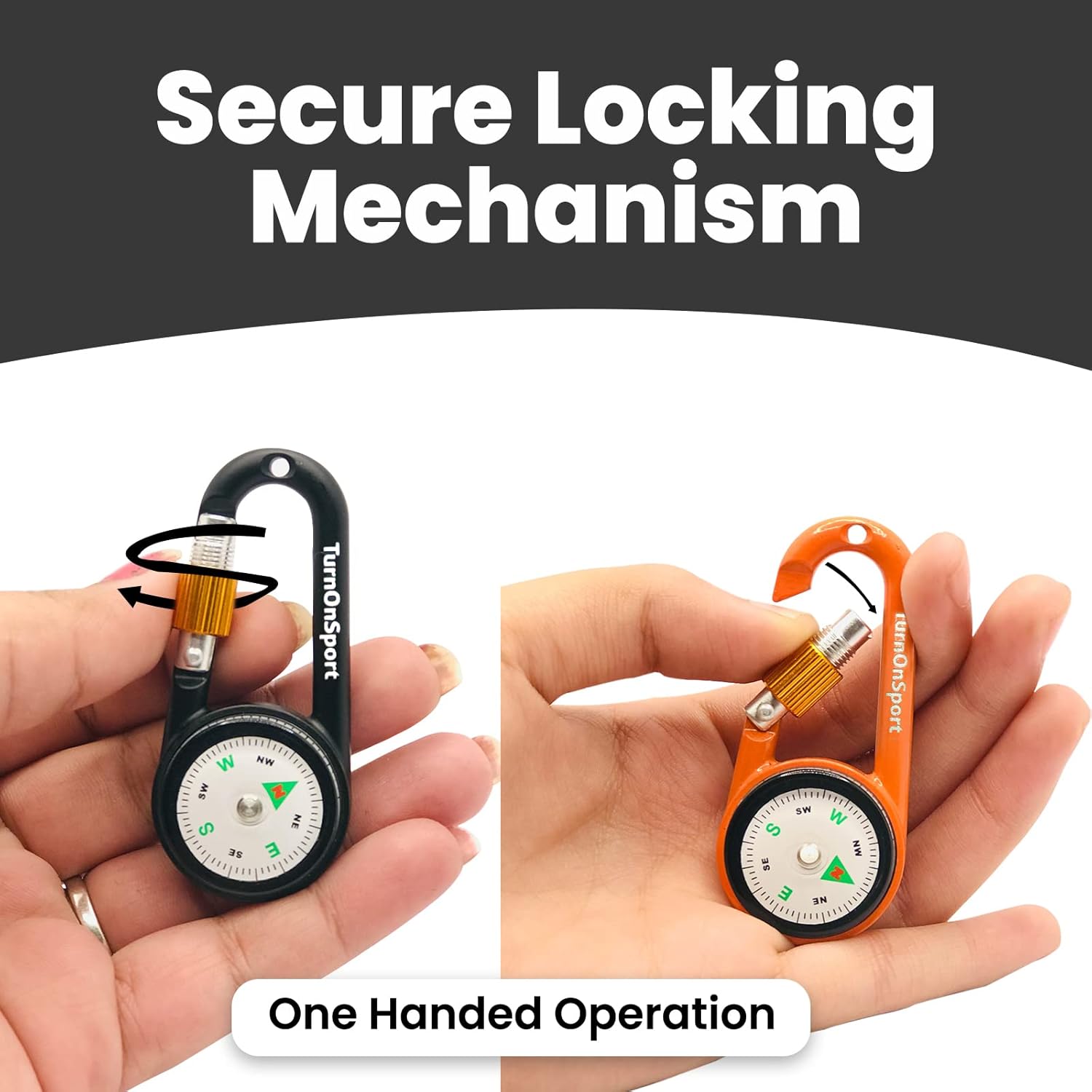 2 IN 1 DESIGN: Carabiner Clip compass combines the functions of a compass and a mountaineering buckle with a twist lock, and when not in use, it can be quickly snatched out of the way and hung on a belt or bag with a carabiner. Please take care of the compass keychain when using it to ensure that the direction is accurate