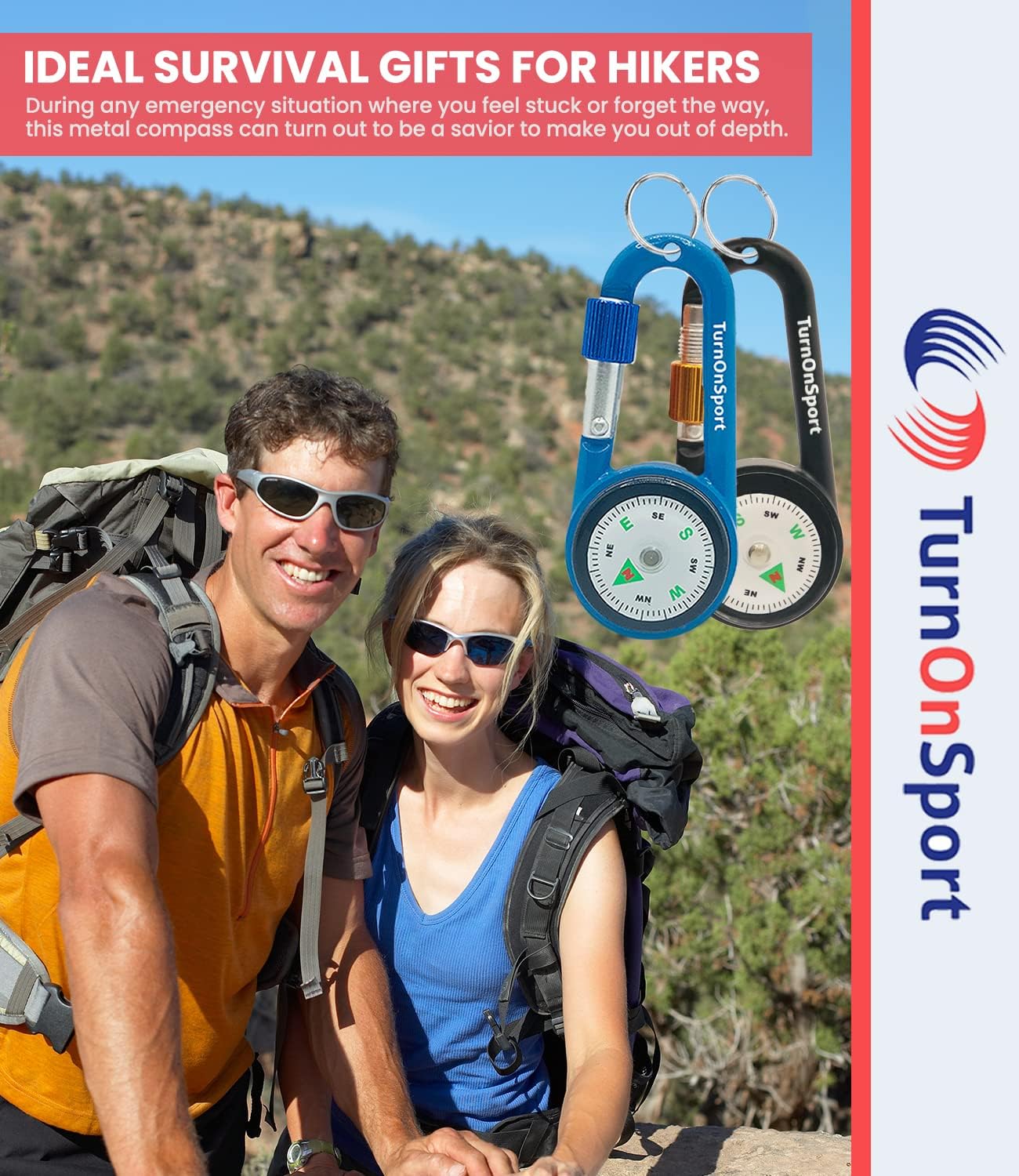 IDEAL SURVIVAL GIFTS FOR HIKERS: During any emergency situation where you feel stuck or forget the way, this metal compass can turn out to be a savior to make you out of depth. So, Carabiner Clip On Compass for hiking is an ideal gift for cub scout and eagle scout, adults who love outdoors, girl & boy kids