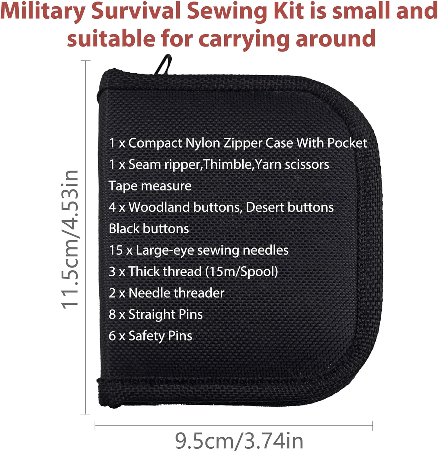 ✅ Tactical-Grade Design – Equipped with military-style buttons, three large thread spools (woodland, desert, and black), high-quality needles, pins, and scissors. Built to meet rigorous military standards