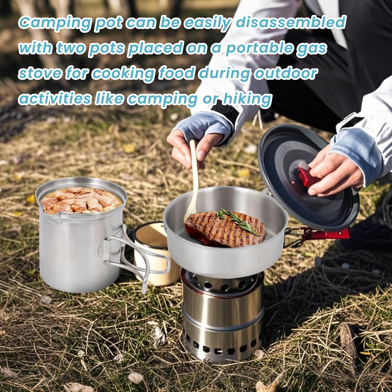 HIGH-QUALITY CONSTRUCTION: This outdoor cooker set is ideal for campers and outdoor enthusiasts. Made from high-quality stainless steel, this camping pot is thicker than standard pots, making it suitable for a range of cooking tasks