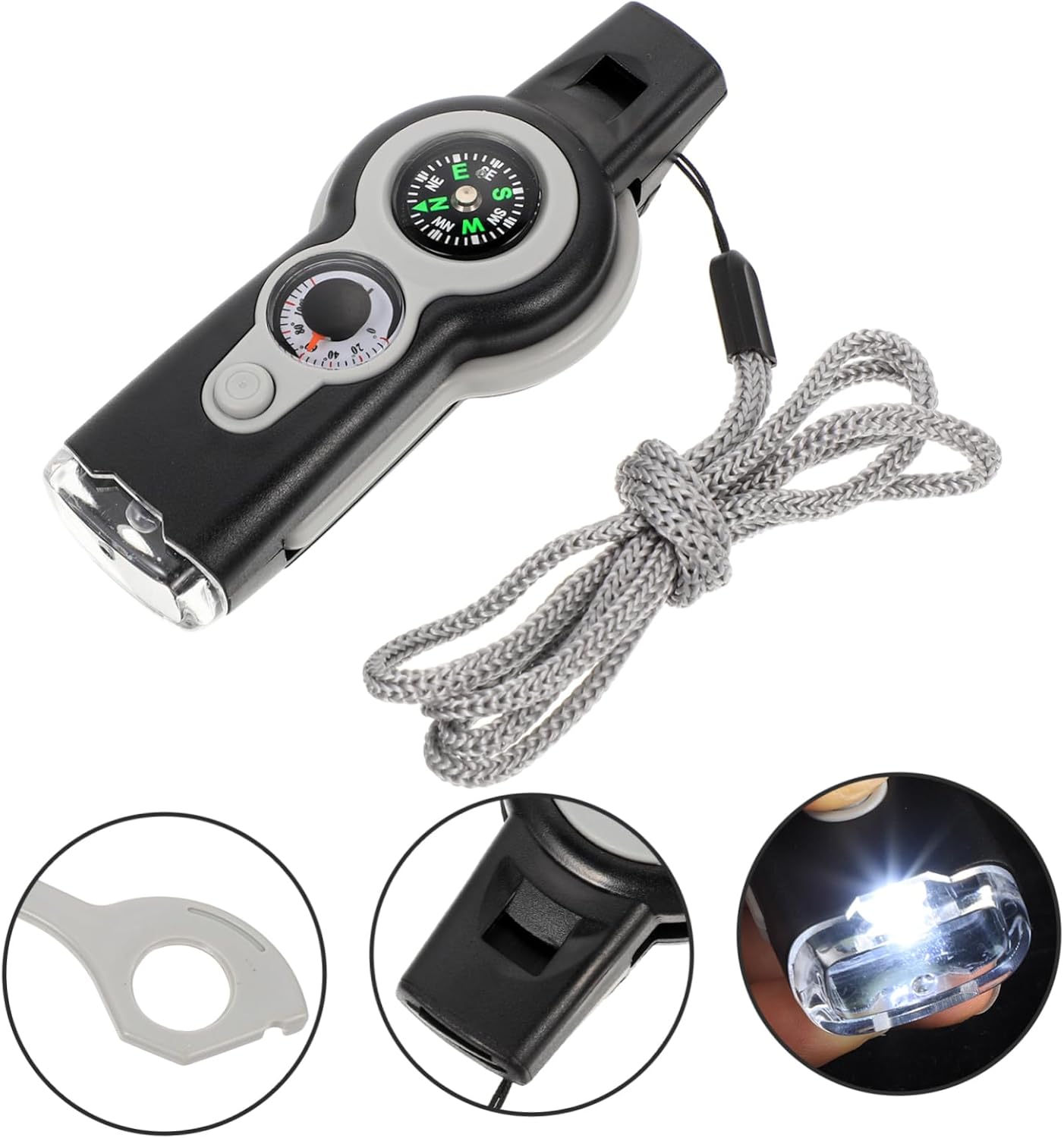 Portable whistle:with seven-in-one design, it can be used as a whistle, a compass and a thermometer, etc,survival whistle