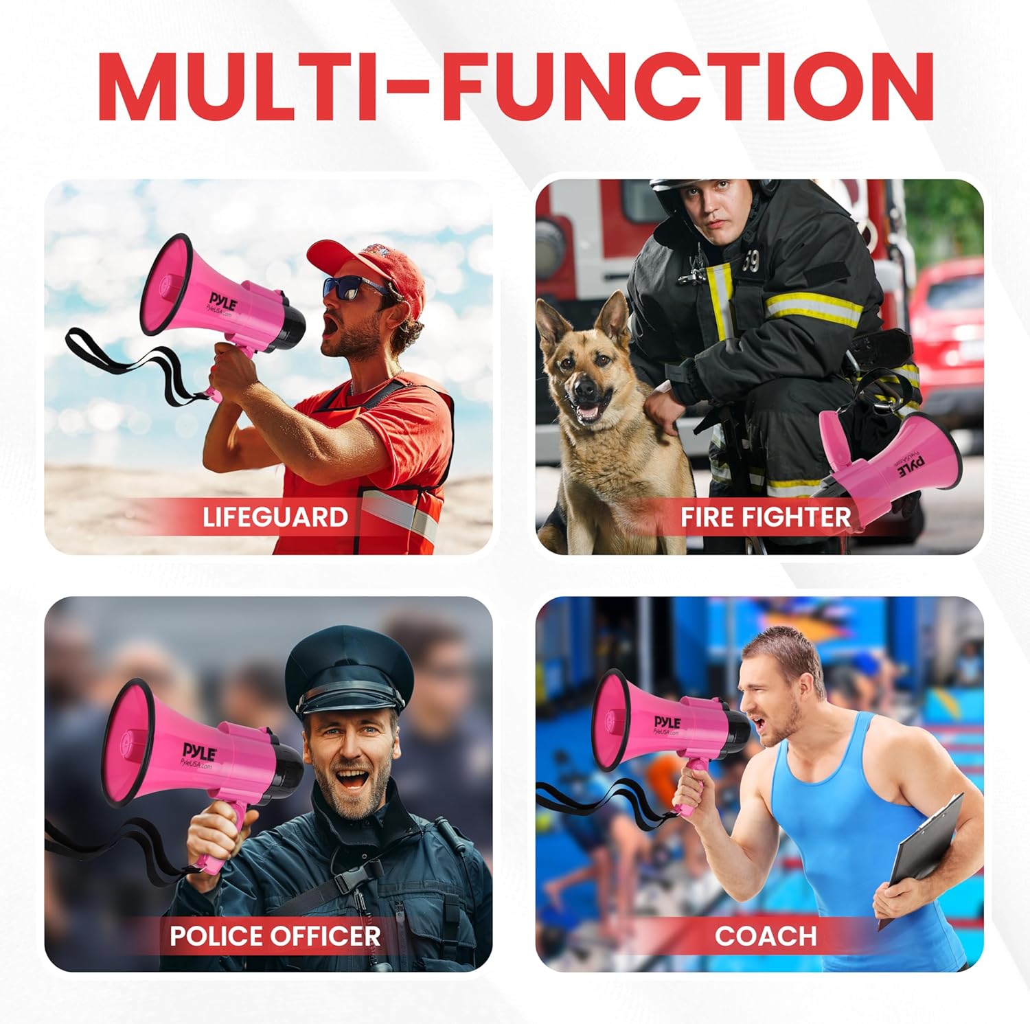 HIGH POWERED PA SOUND: This bullhorn megaphone has a high powered PA sound and the audio projection range is up to 800 plus yards. There is an adjustable volume for noise control during different situations