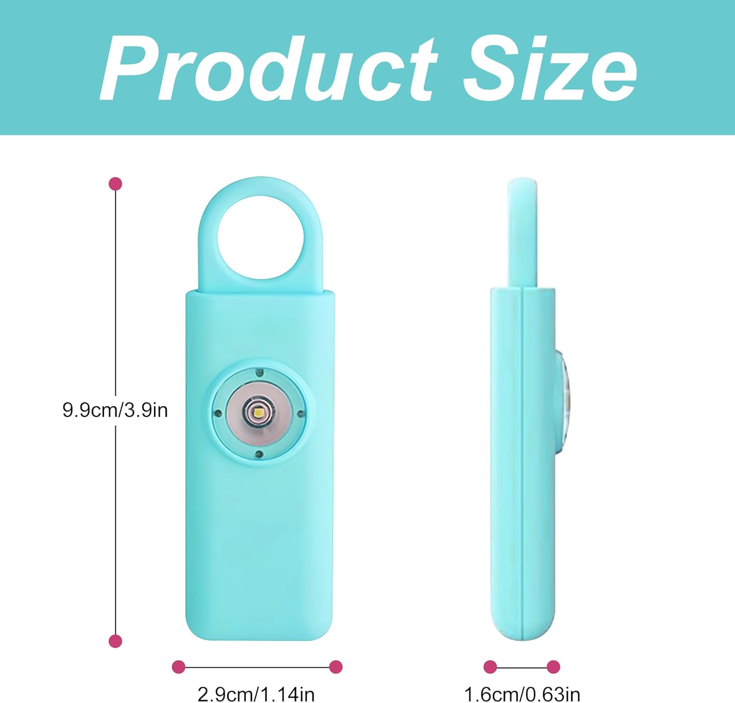 【Convenient to carry】The size of this personal safety alarm is 3.90 * 1.14 * 0.63 inches, very compact and easy to carry. And with a smooth surface, simple and modern appearance, reusable, and replaceable battery, it has become an essential personal safety alarm for women.