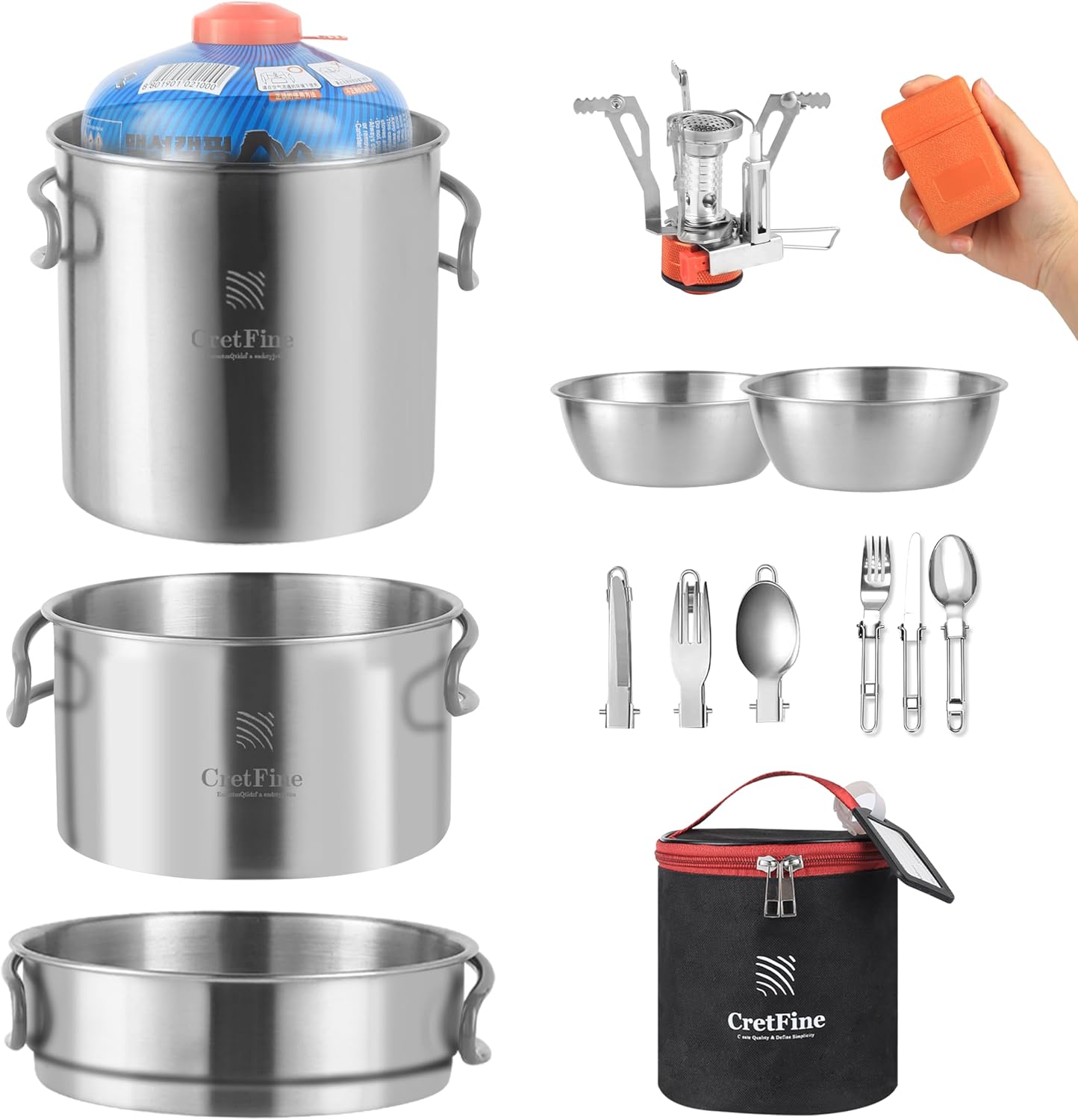 【🌄 Perfect for 1-2】: CretFine hiking cooking kit, weighing only 2 pounds, is perfect for both solo adventurers and partners. these mess kit designed to be lightweight and compact, catering to the needs of 1-2 people during camping, hiking, backpacking, and other outdoor activities.