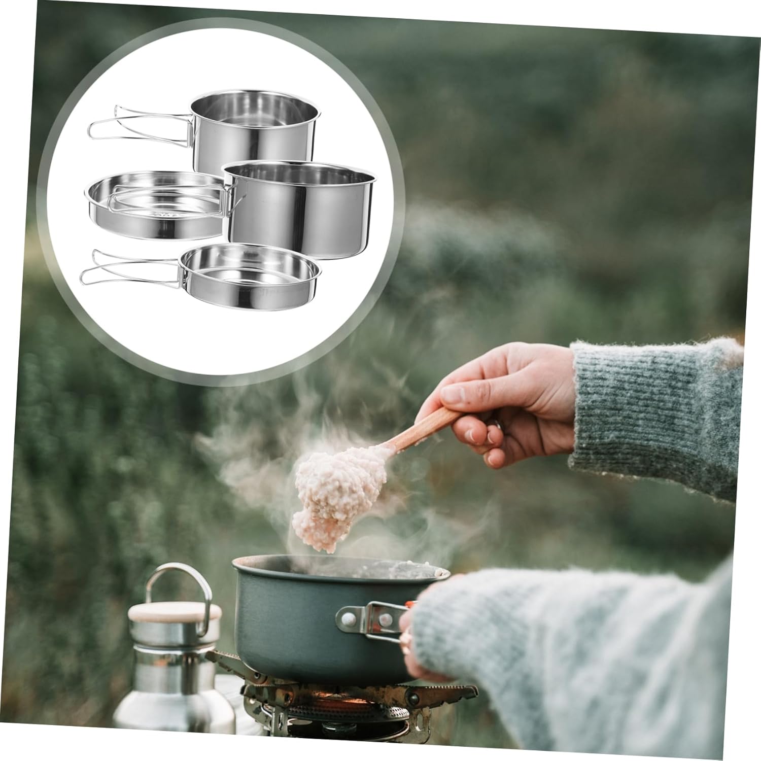 -Material:Stainless steel portable cooking set