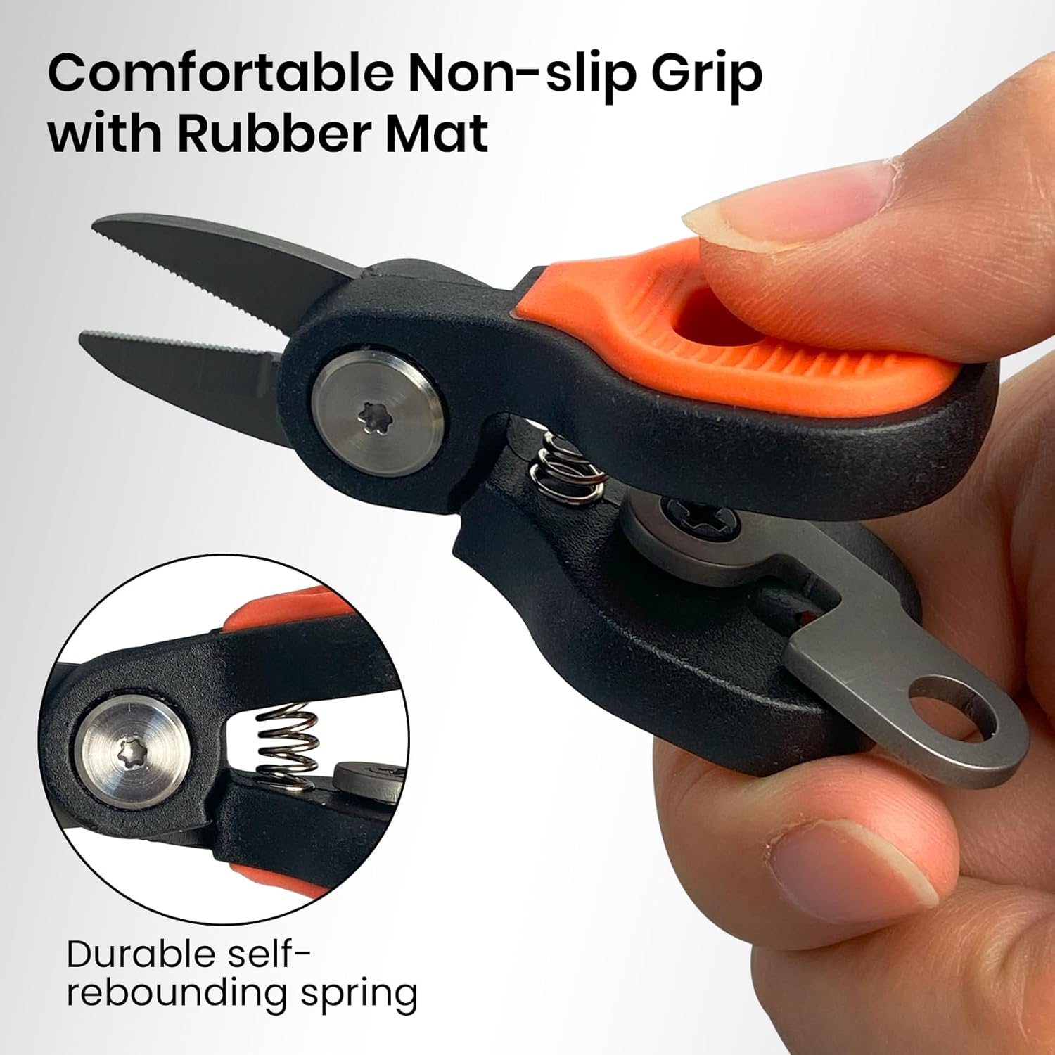 Stainless-steel Serrated Blades: Made of sturdy high carbon steel, these fishing scissors feature ultra sharp serrated edge, great strength and reliable corrosion resistance, providing long-lasting performance for anglers in all harsh conditions