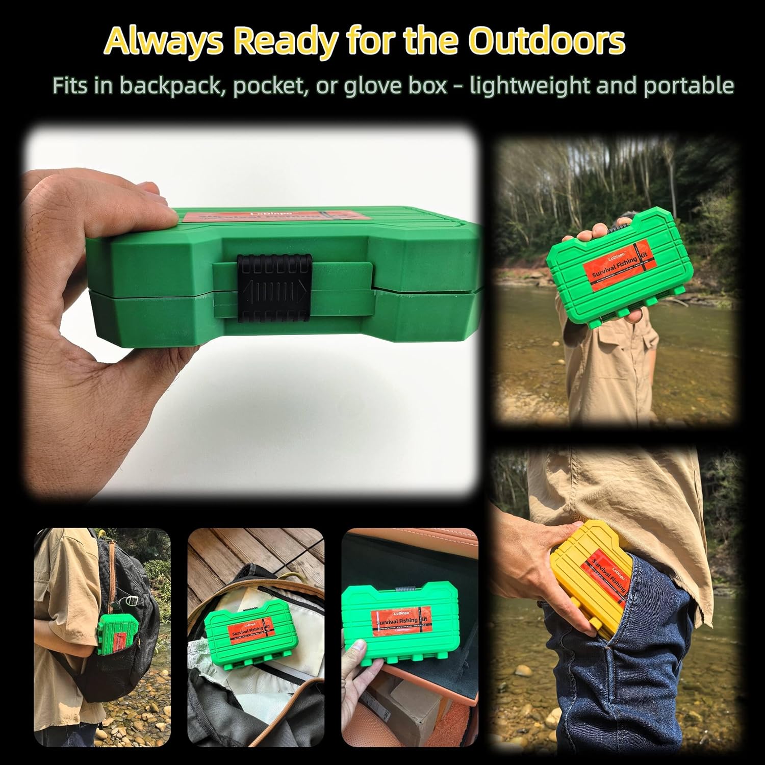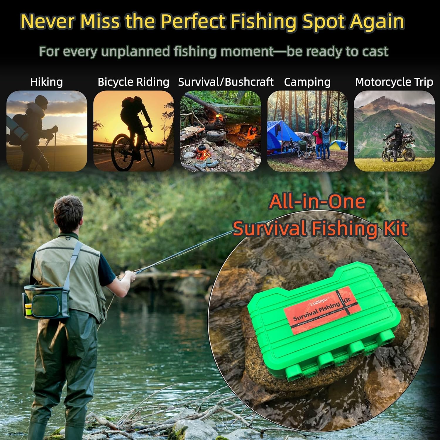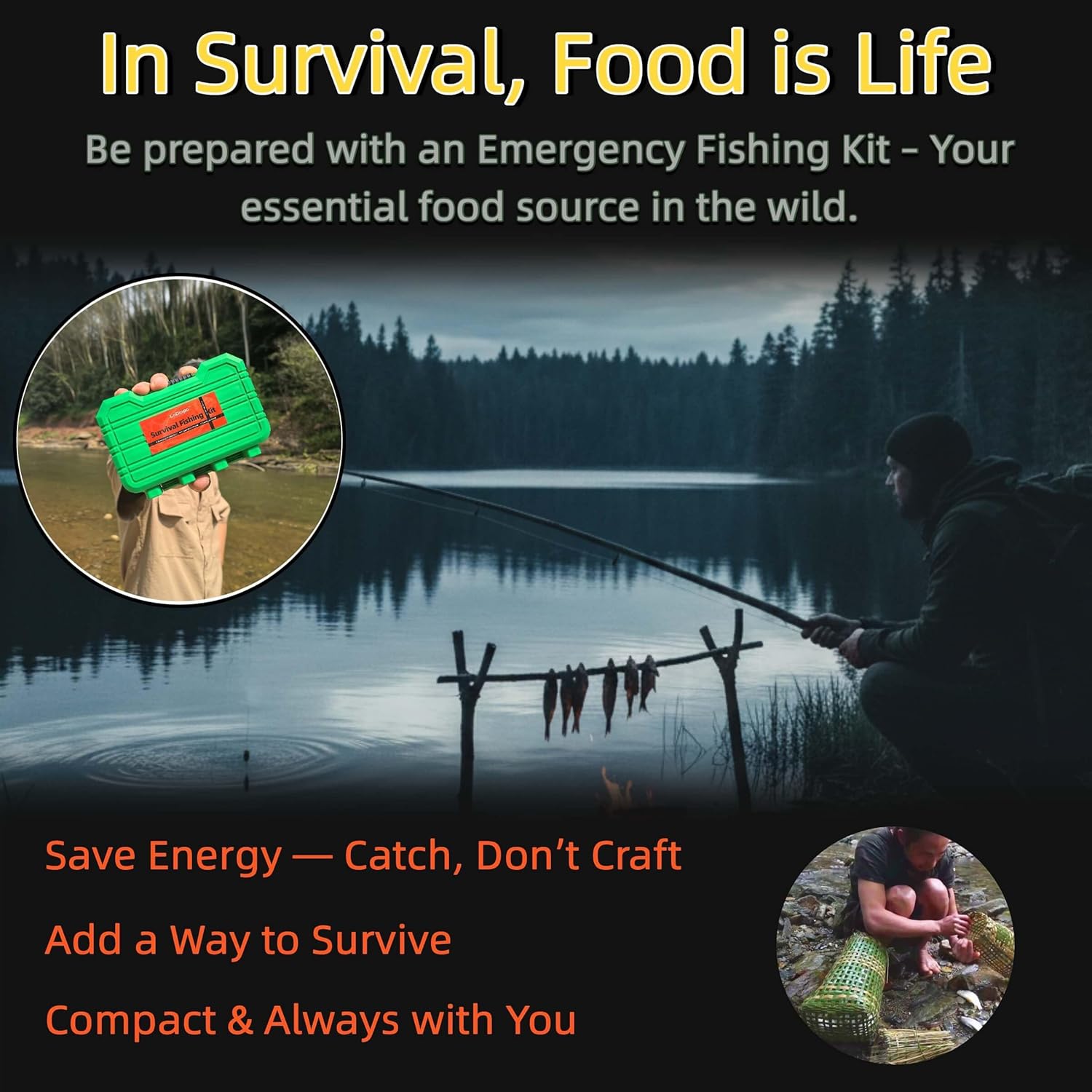 Never Be Caught Without Fishing Gear – Out in the wilderness, food can be as important as fire or shelter. This upgraded survival fishing kit keeps you ready for emergencies—perfect for camping trips, hiking trails, or bug-out bags.