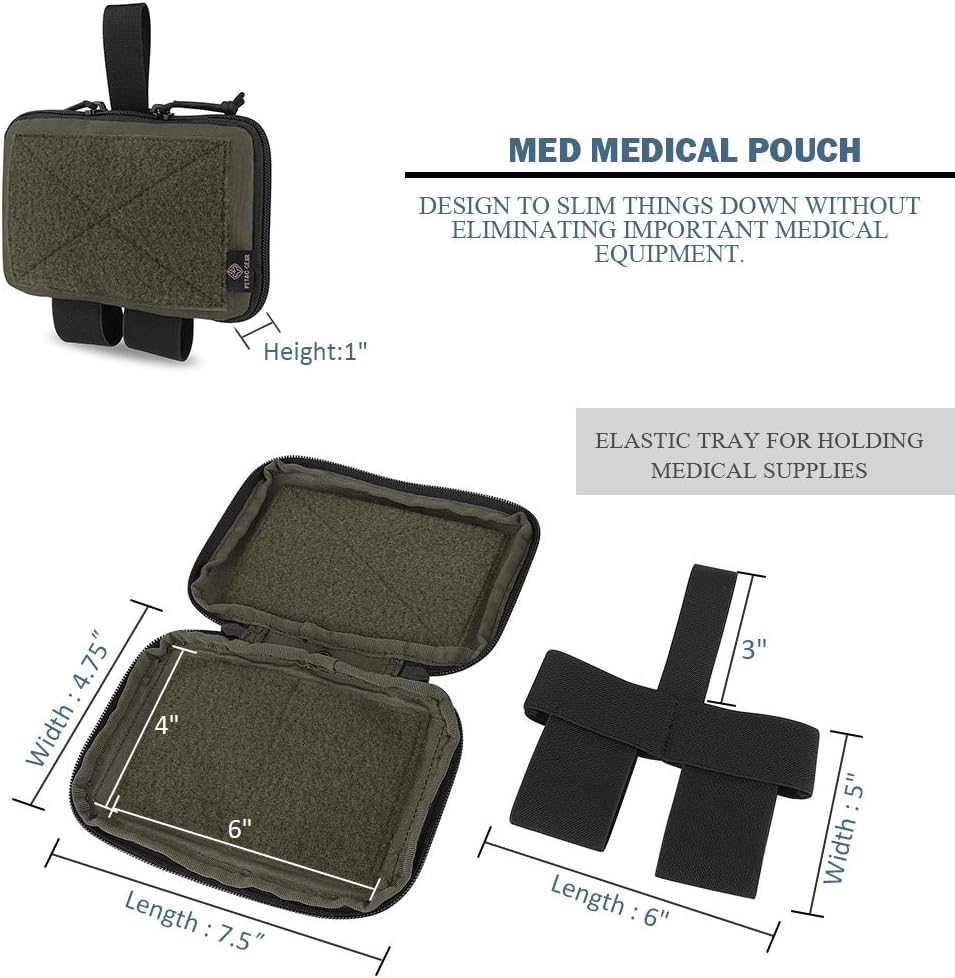 Pouch dimension(Full): 7.5″ L x 4.75″ T x 2″ W. Elastic tray dimension: 6″ L x 5″ W. Please be aware that larger medical gear may not fit this pouch. ONLY 1 medical pouch (tray included). Other gear shown in the pictures NOT included.