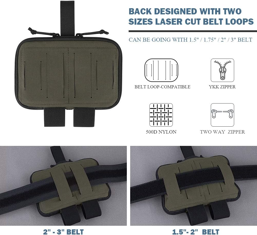 Back designed with two sizes laser cut belt loops that can be going with 1.5″ / 1.75″ / 2″ / 3″ Belt. This medical pouch is NOT MOLLE-compatible, only belt loop-compatible. It can be attached very closely to the body with a regular EDC belt. Capable of being concealed with jackets.