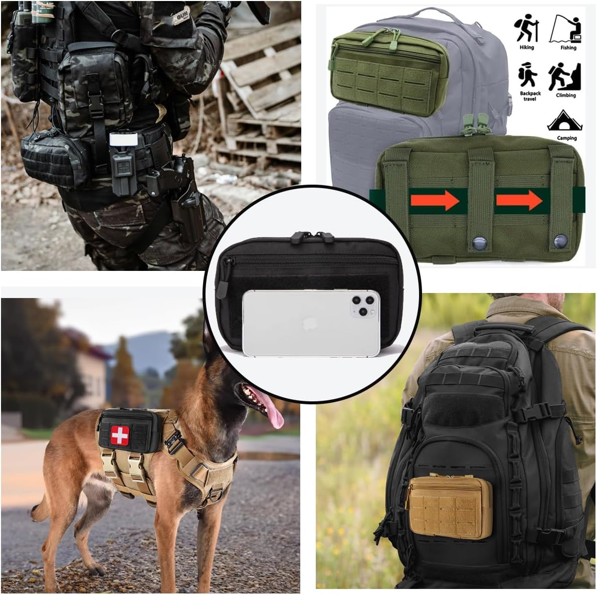 Multi-Function EDC Pouch:Designed for everyday carry, this tactical pouch holds essential tools, a phone, small first aid items, and emergency gear in one compact unit.