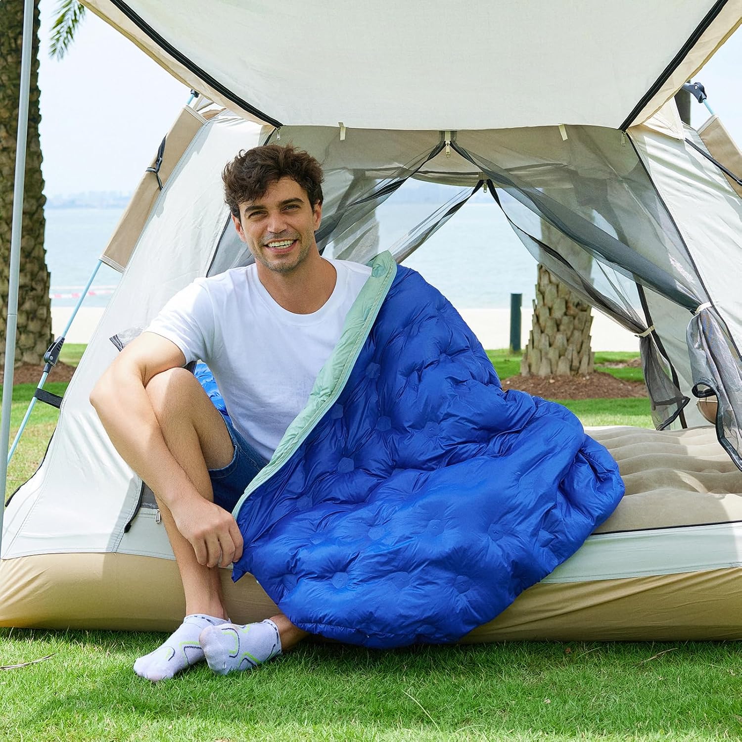 LIGHTWEIGHT SLEEPING BAG -weighs 1.92 pounds, size is 86 inches long*34-inch width, puts away the size: φ6.8 inches*11.8 inches long. It is recommended to use temperature: comfort (55 F-45F), danger ( 32F), can be placed on your car . It’s a must have for car or ultralight backpacking Alpinism, Camping Hiking Outdoor Adventure