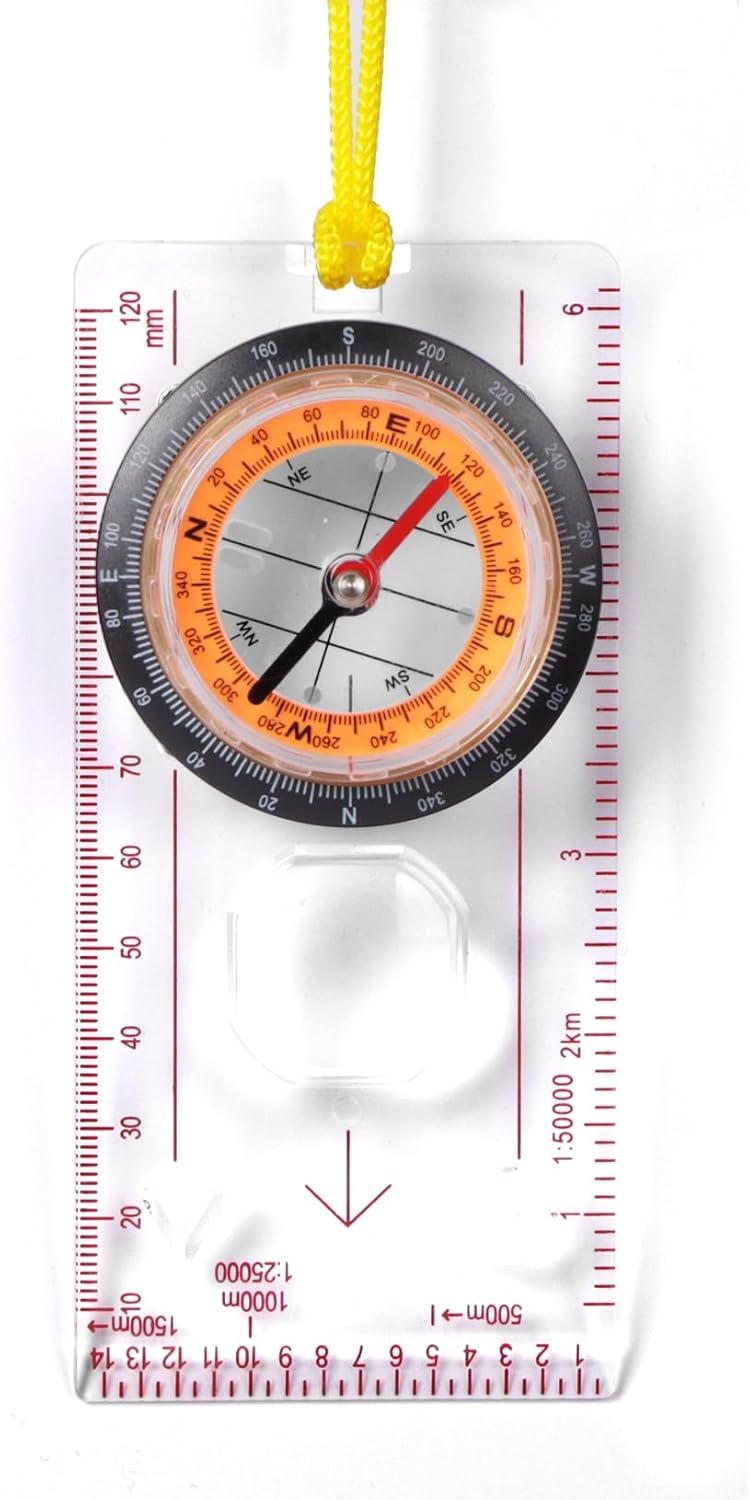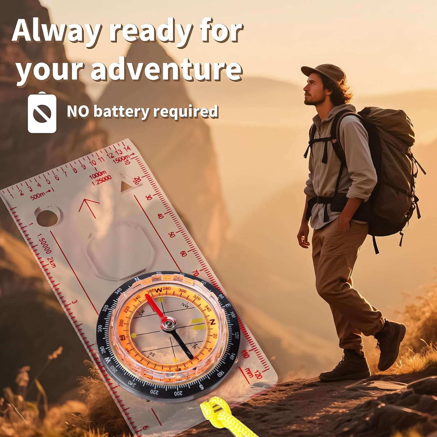 Orienteering & Hiking Essential: Map-compatible compass + ruler for precise navigation & route planning; whistle for team communication & distress calls.