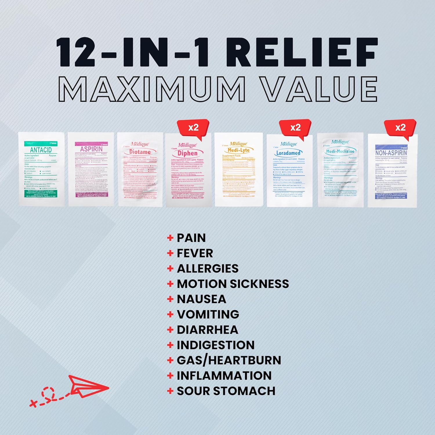 Comprehensive: Contains essential over-the-counter medications for common travel ailments.