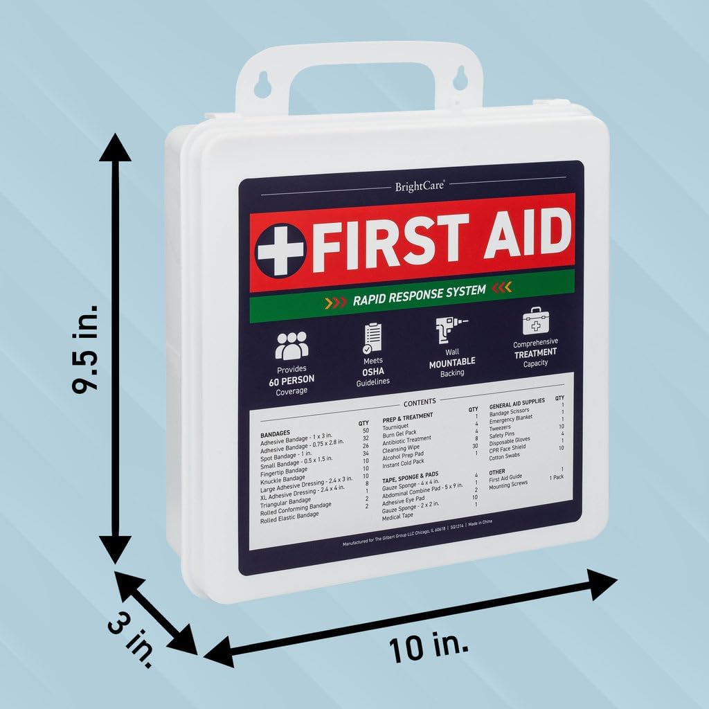 Perfect for Professionals and Businesses: From offices and restaurants to large service vehicles and retail shops, the BrightCare First Aid Kit ensures that you’re equipped with the necessary supplies to manage workplace injuries for larger teams and higher foot traffic.
