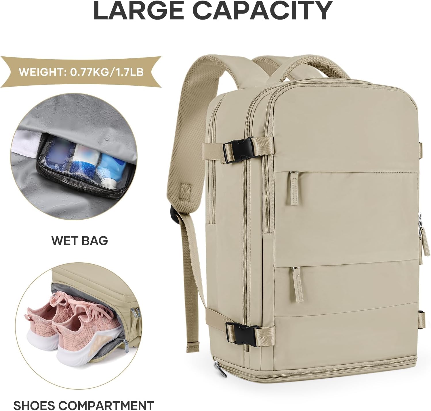 【Wet Bag & Separate Shoe Compartment Design 】 The wet bag is made of high density water resistant material can help you to separate dry items and wet items,if you have wet clothes or towel,you can put it in wet bag. A separate shoe compartment can help you carry and keep your shoes better in your travel bag.
