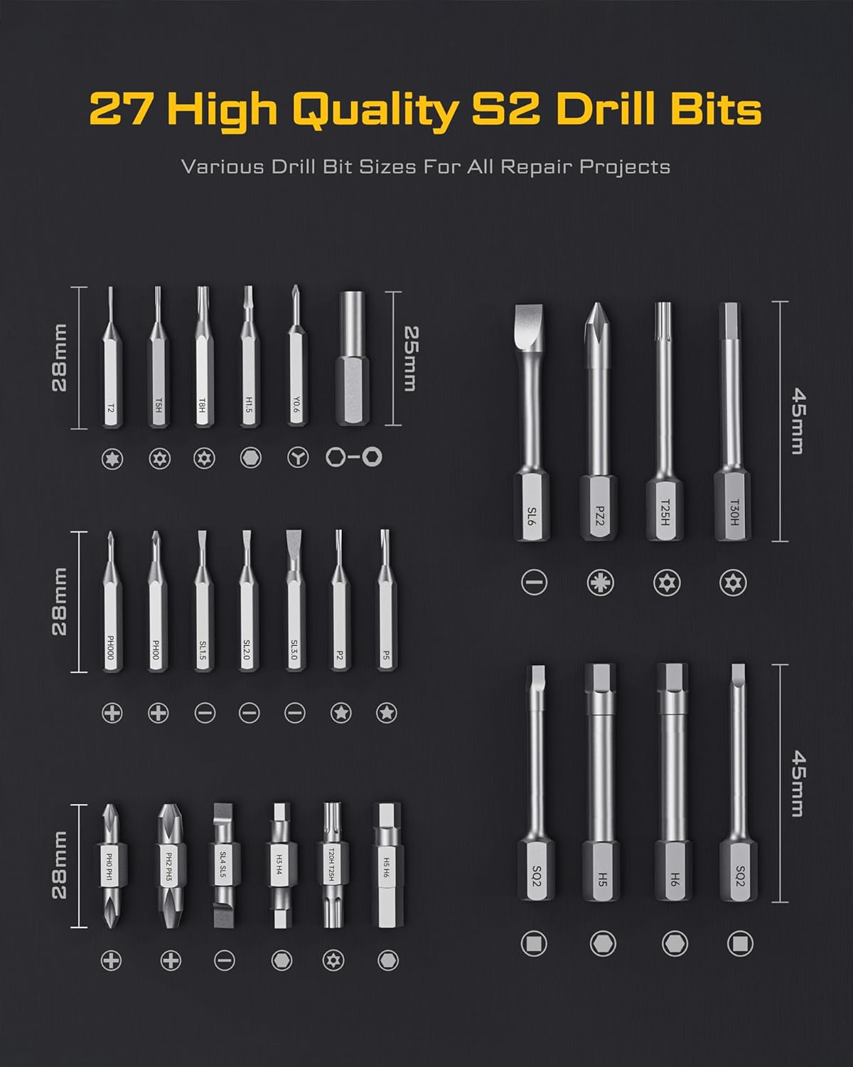 【Great Gift and Stylish Design】With its high-quality, stylish design and compact storage case, automatic screwdriver set is not just a tool but also a practical gift choice. Not only it is an exceptional gift for men, DIY enthusiasts, handymen, and professionals,but also a great gift for Christmas, birthdays, Father’s Day or any special occasion!