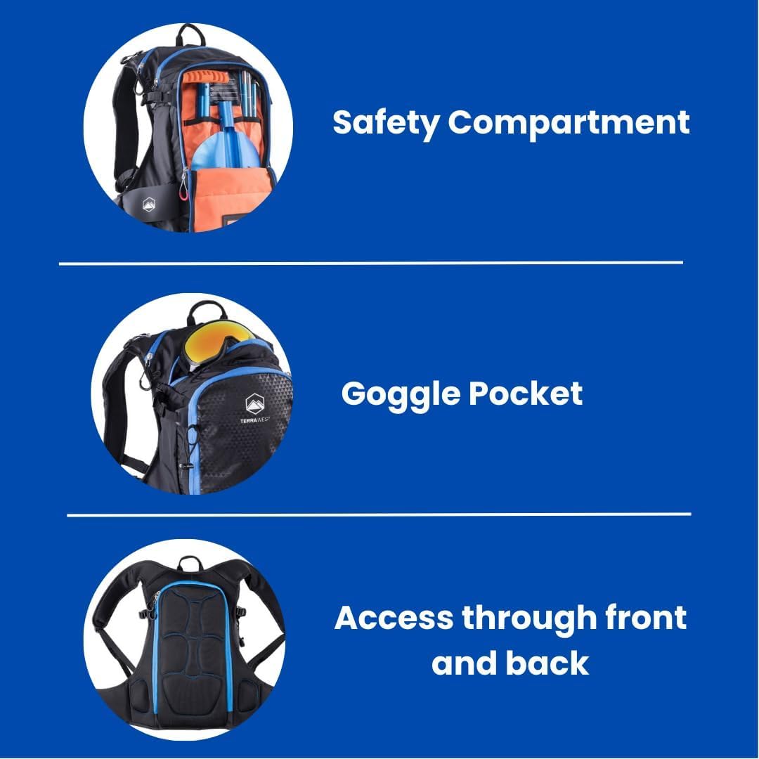 [ TerraWest Core Ski Backpack ] This lightweight 22-litre Ski Backpack comes integrated with a Recco Reflector and Removable Back Protector which is all concealed within a drawstring woven carry bag.