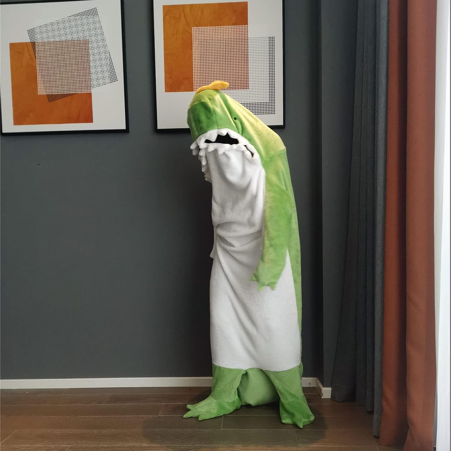 Realistic Dinosaur Design:Wearable dinosaur blanket compared with ordinary tail blanket.You can put your head, arms and feet in it, so that the whole body can feel the warmth of the blanket,you can also put your hands outside get released.Practical dinosaur tail and warm feet make it easy to switch modes when sleeping and walking, and wide dinosaur mouth entry for easy on and off.Unique dinosaur Form, realistic classic colors will help your get into character every time they wear it.