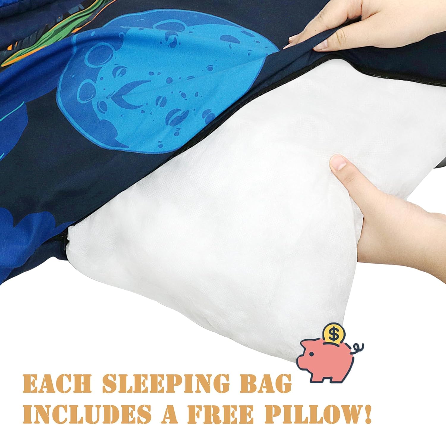 【Machine Washable for Easy Care】This children sleeping bag is a dark blue very stain resistant and can be machine washed without damage. Simply remove the detachable pillow, place the sleeping bag in cold water, and dry it at a low temperature to make it clean and ready for use. Kids can do everything in it, and mothers never have the trouble of cleaning up again.