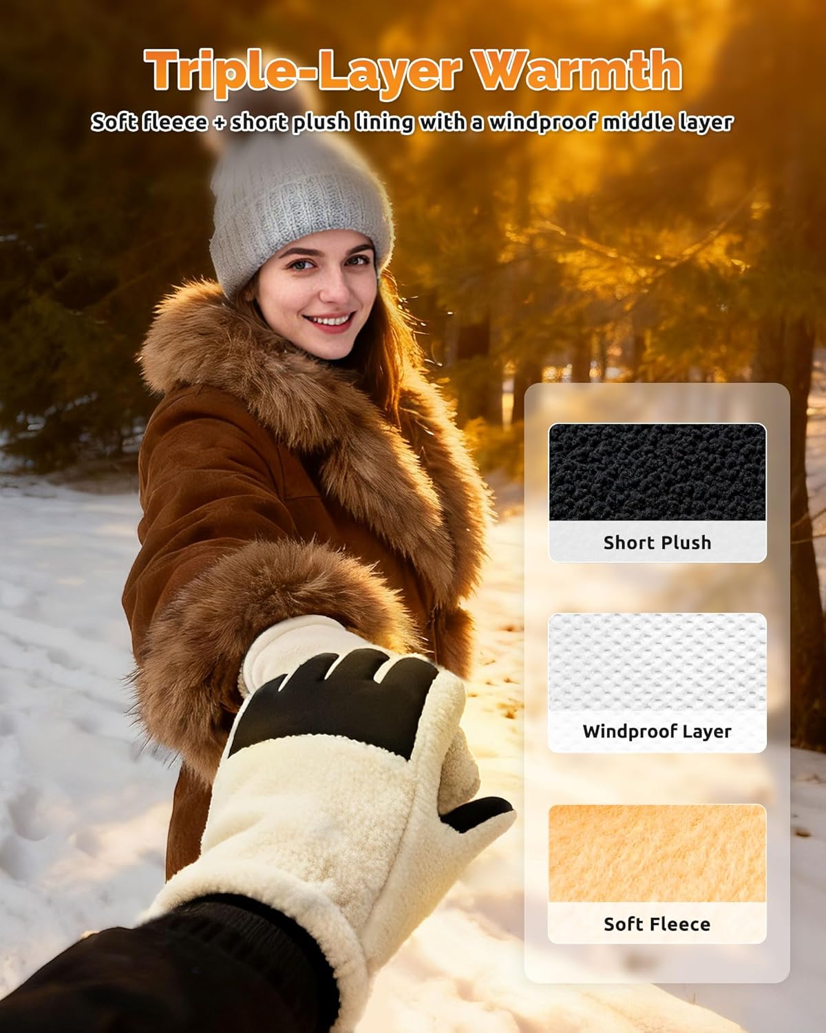 Feminine Elegance with Protective Features: Many gloves focus on utility but overlook aesthetics. These fleece gloves are windproof, soft, and designed with a feminine touch. They elevate winter outfits while delivering reliable protection, proving that women’s gloves can be both stylish and practical