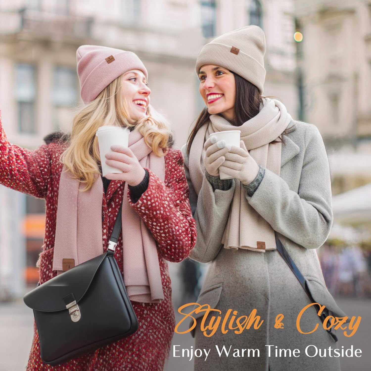 The video showcases the product in use.The video guides you through product setup.The video compares multiple products.The video shows the product being unpacked. Women Winter Hat Gloves Scarf Set Merchant Video