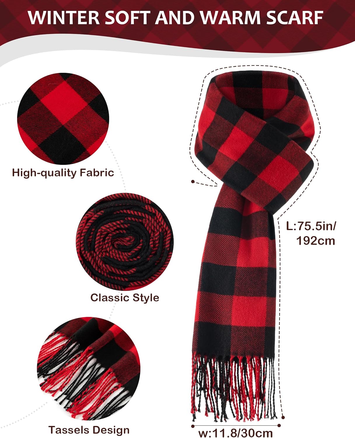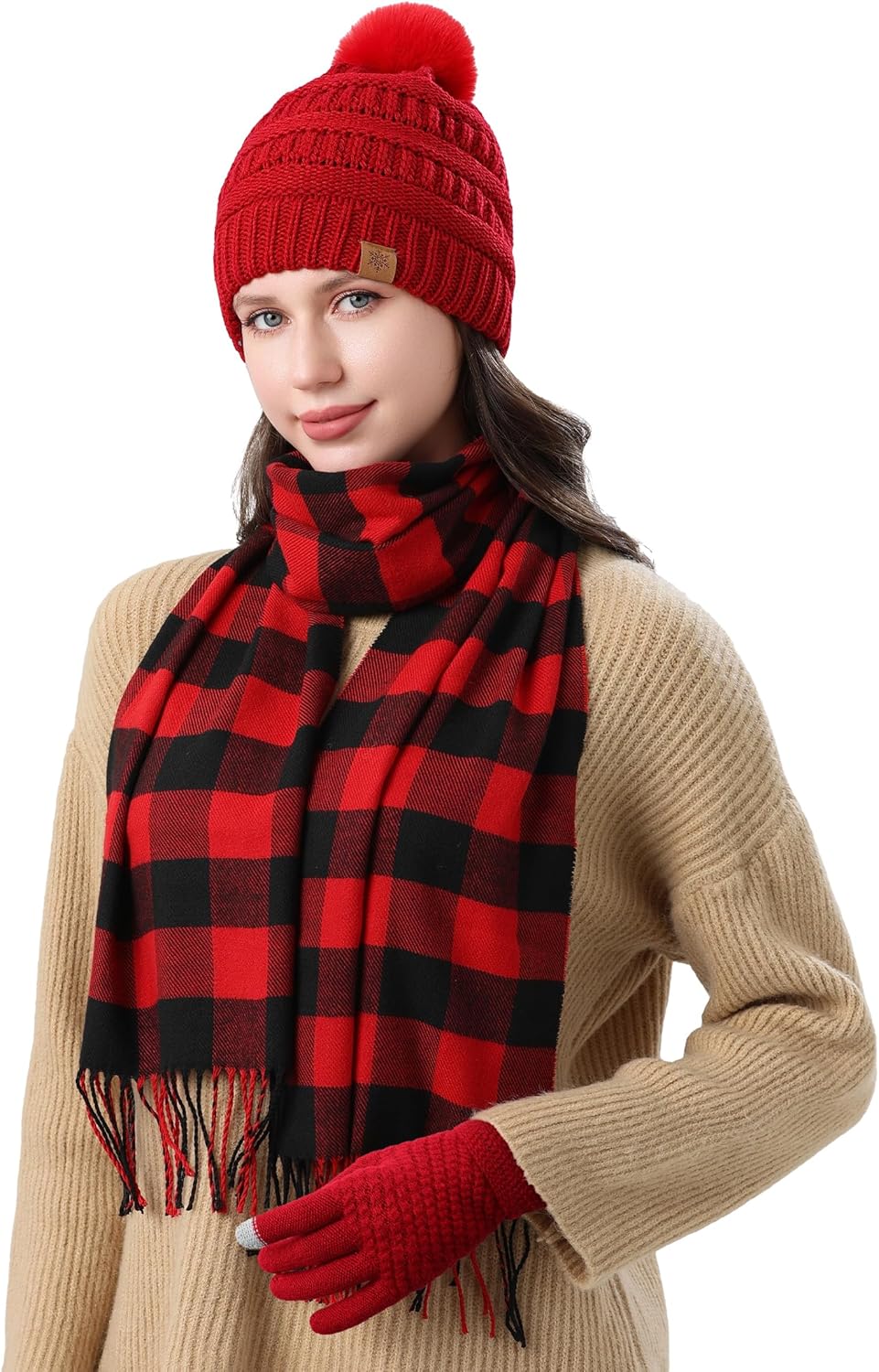 Designed for everyone, our winter set offers a comfortable, snug fit for most head sizes and hand shapes. The beanie and gloves feature excellent elasticity without feeling tight. This scarf measures 75.5″L x 11.8″W, offering a generous winter scarf for women.