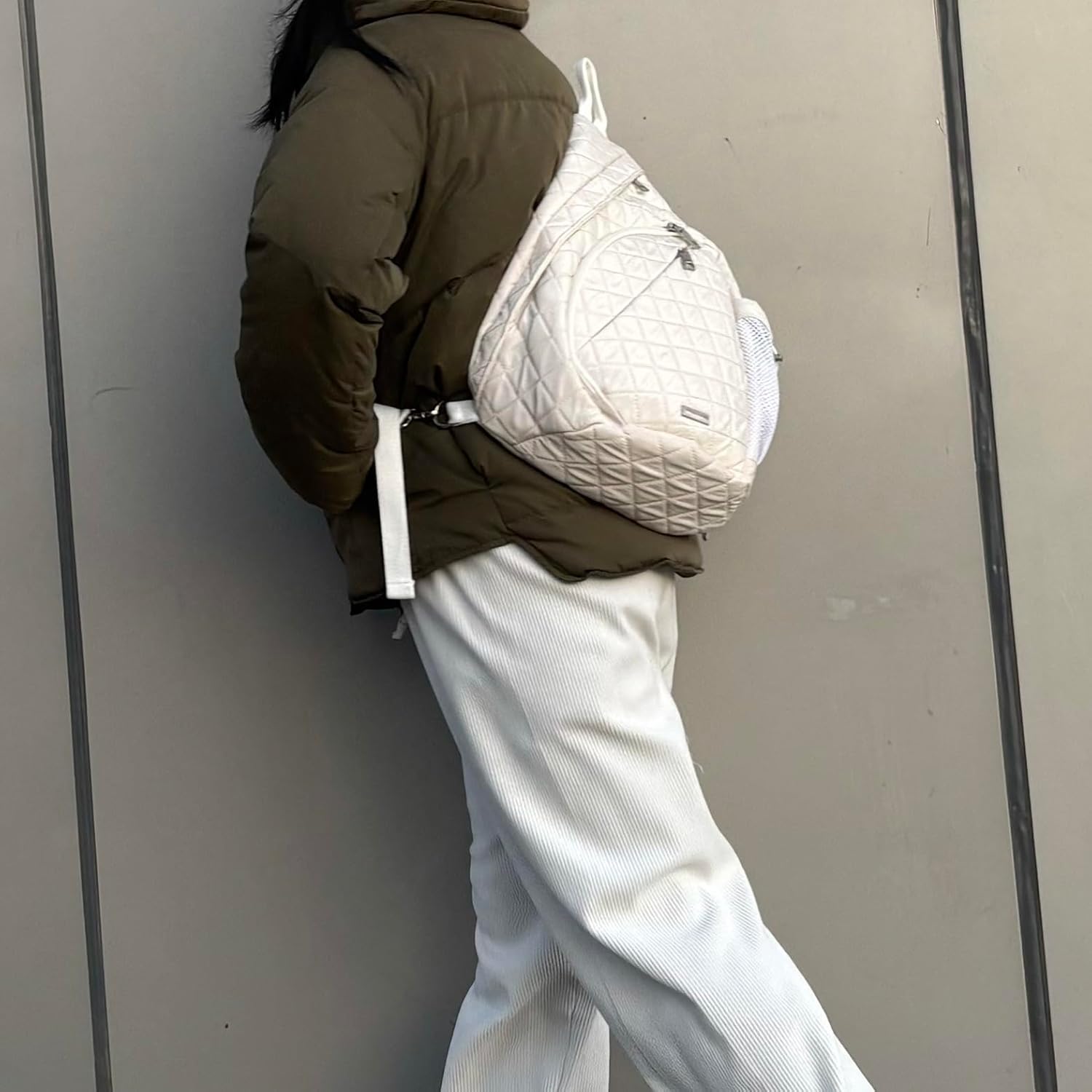 Pocket on the shoulder strap is suitable for cards/keys/wireless earbuds.