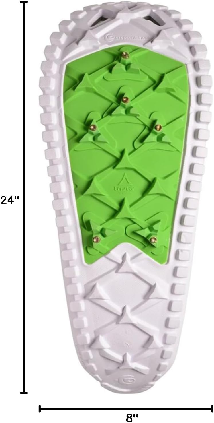 Easy To Use: These are by far the easiest and most intuitive snowshoes to use. The Secure hook and loop bindings are incredibly intuitive, simple, and stay tight across rolling terrain; 24 x 8 inches
