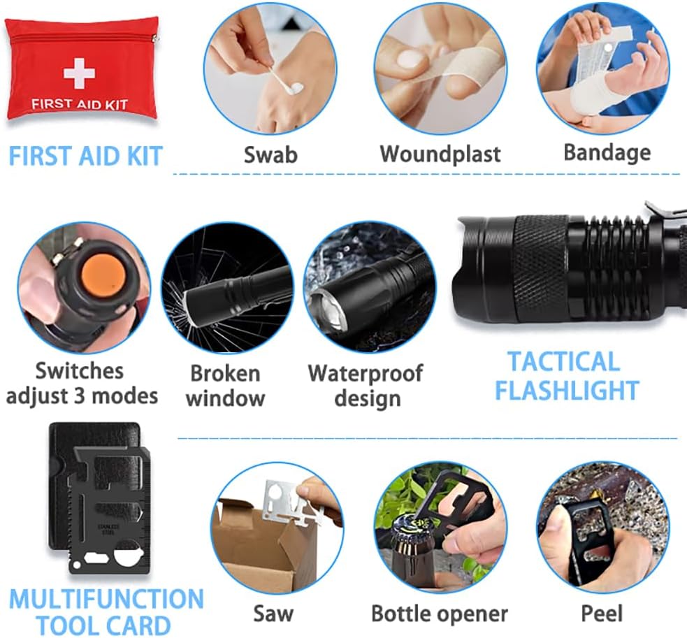 [Necessary Equipment]: To prevent emergencies, equip each family member with a survival gear. Whether it is outdoor activities or natural disasters or war situations, this emergency kit can provide what you need.