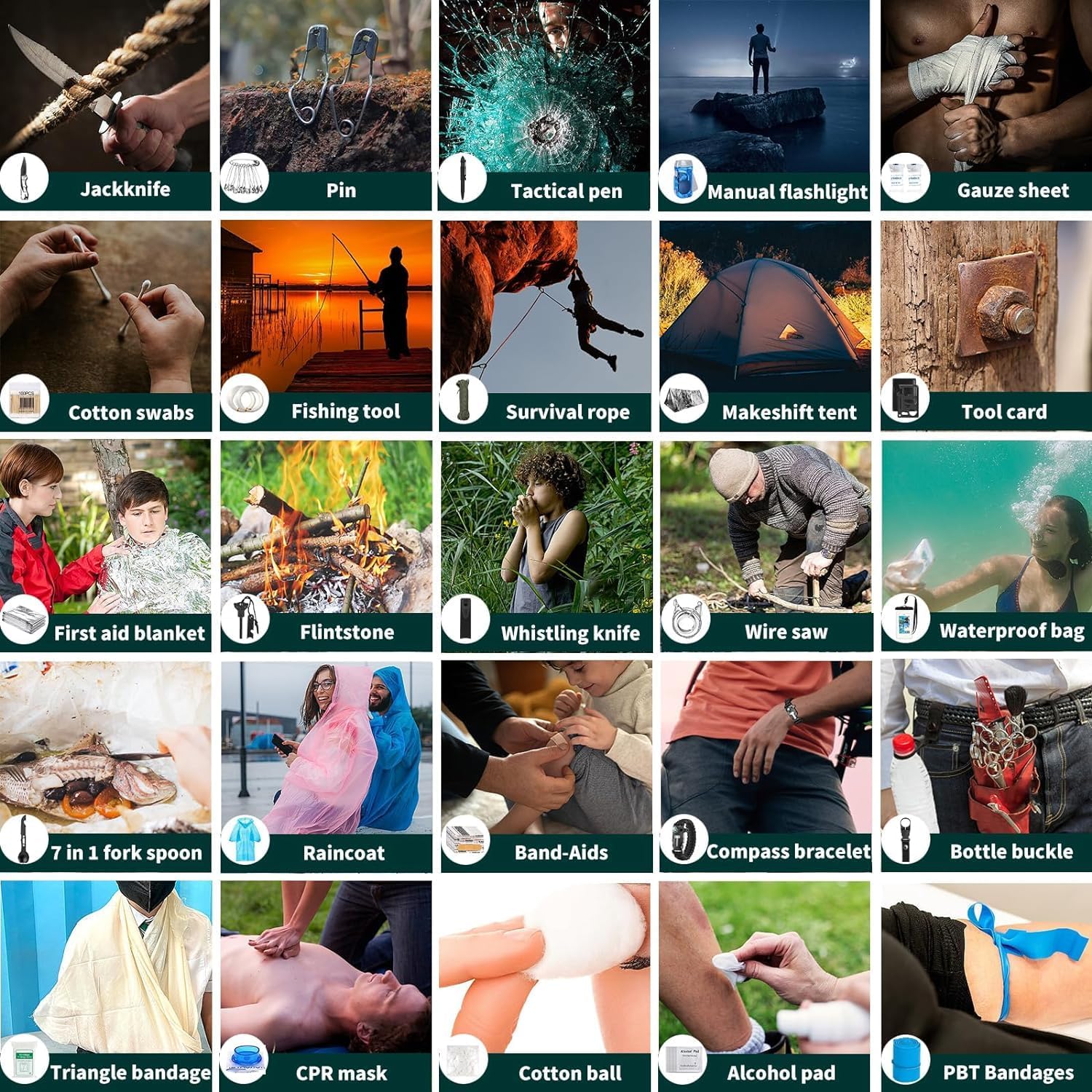 [Abundant Accessories]: The accessories in the first aid kit survival are divided into camping gears and first aid supplies. The two accessories are combined in one bag, which can be applied to emergencies such as hiking, camping, hunting,fishing, mountain climbing, rock climbing, and earthquakes. The comprehensiveness of this emergency survival kit is beyond your imagination. Accessories is reusable.
