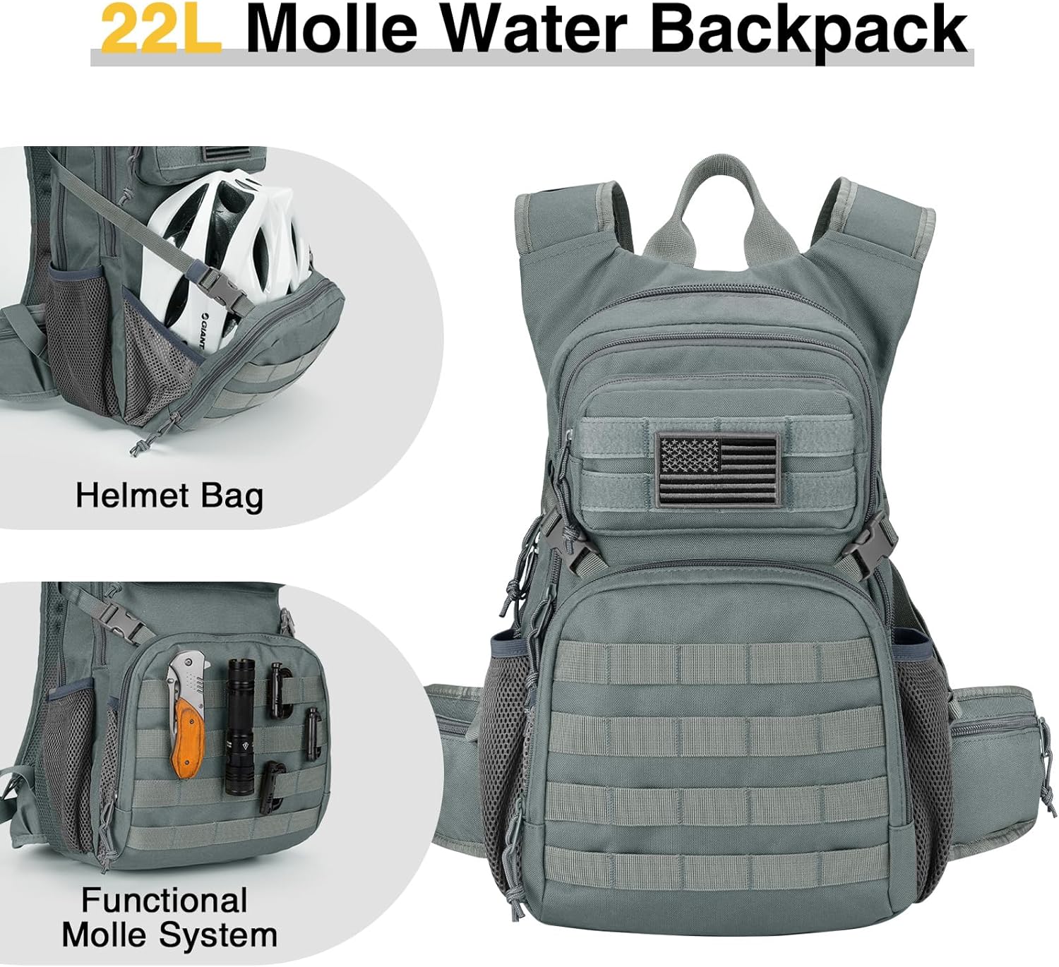 22L Capacity and High-Density Fabric: This tactical hydration backpack measures 18.5 x 10.5 x 7 inches and offers a generous 22L capacity. The sandwich layer between the outer and middle compartments provides expanded storage space, giving you ample room for all your essentials. Constructed from 900D x 600D PVC heavy duty material, the pack boasts excellent tear and wear resistance, ready to meet the demands of any outdoor adventure.