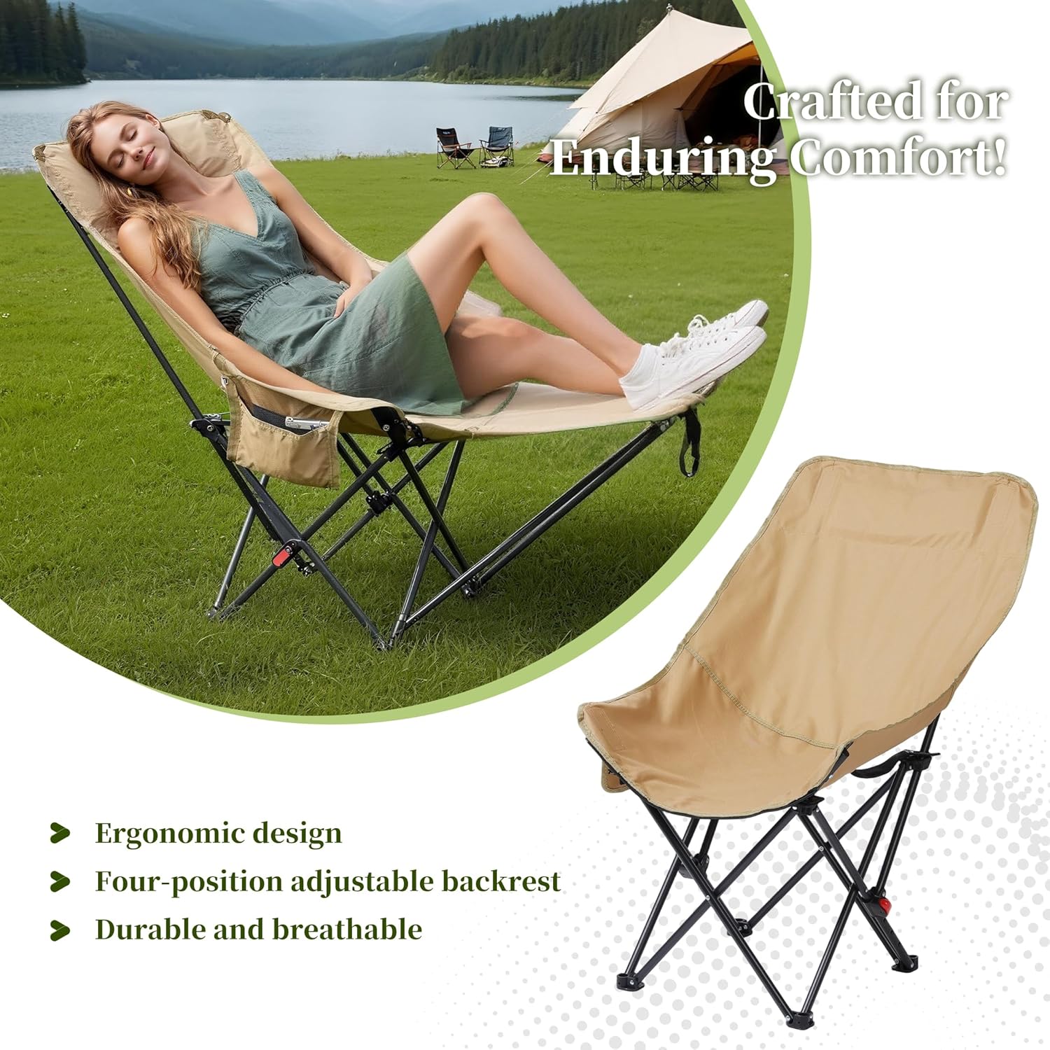 【Moon-shaped design & Enhancing the experience】This outdoor camping folding chair offers excellent wrapping performance, providing a sense of security and comfort, enhancing the quality of your rest.
