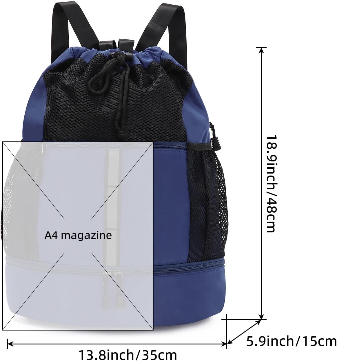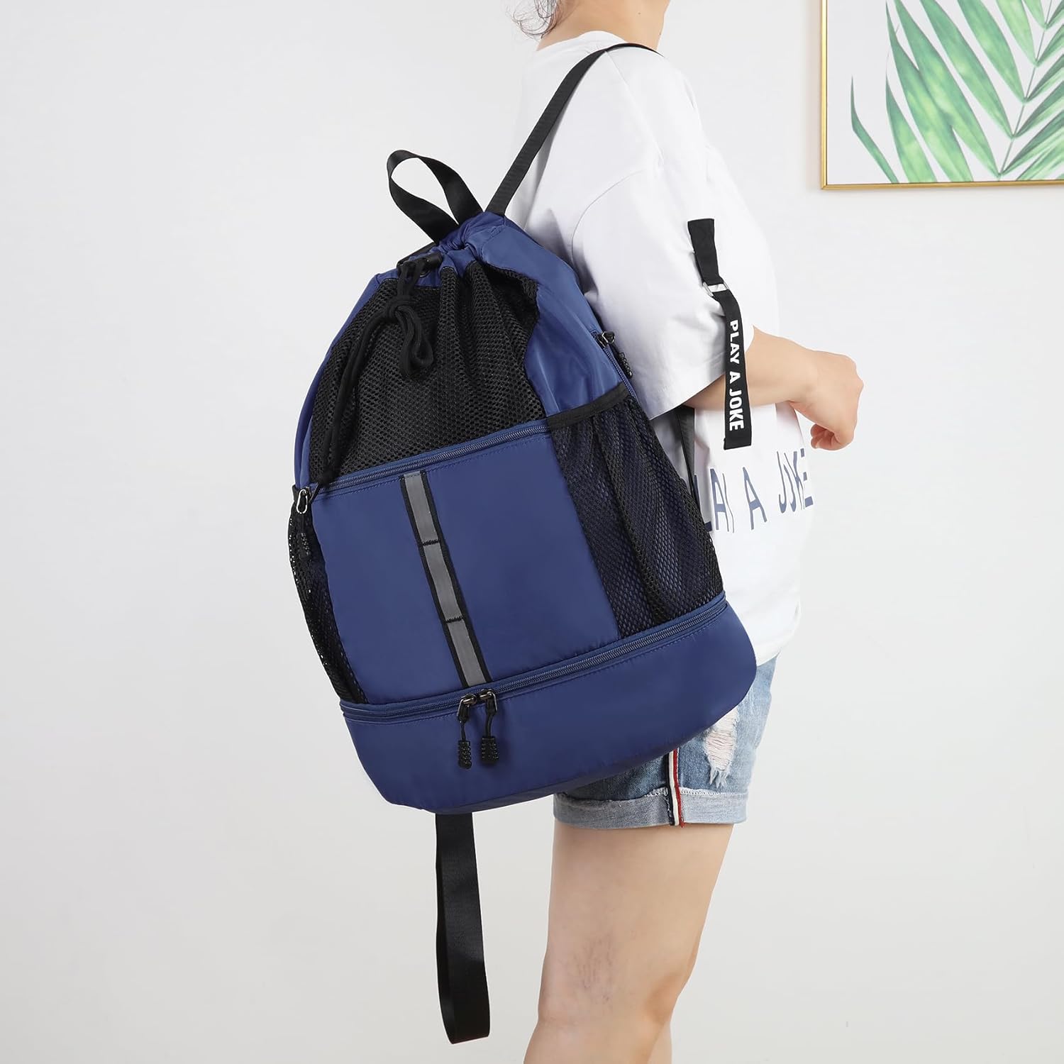 This drawstring bag can fit all active must-haves such as basketball, soccer ball, Baseball gloves, or volleyball, etc. The light and casual gym bag is not only can be used as backpack but also can be used as a tote.