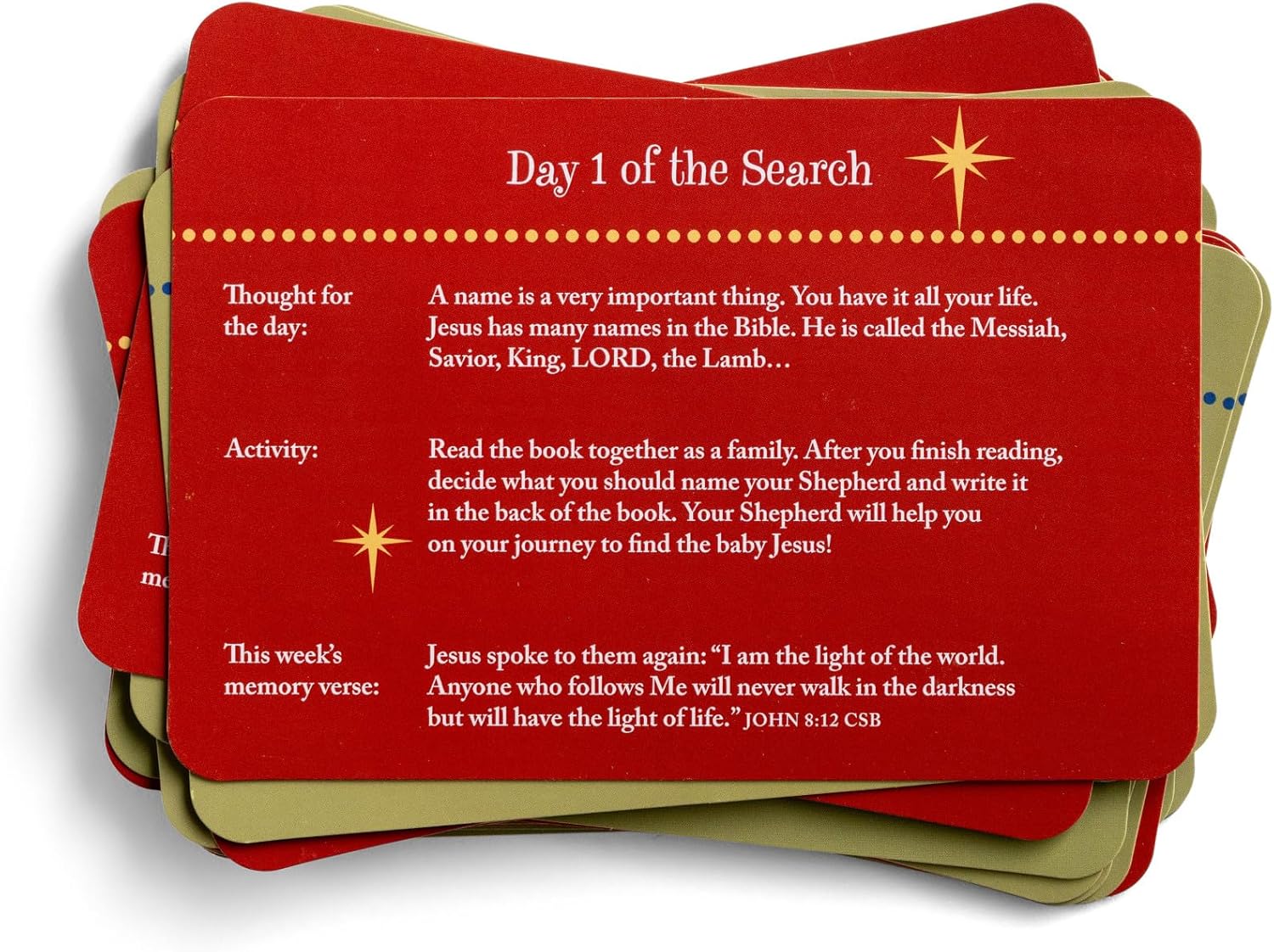 - During Advent, learn about the Christmas Story with these easy-to-use daily search cards!
