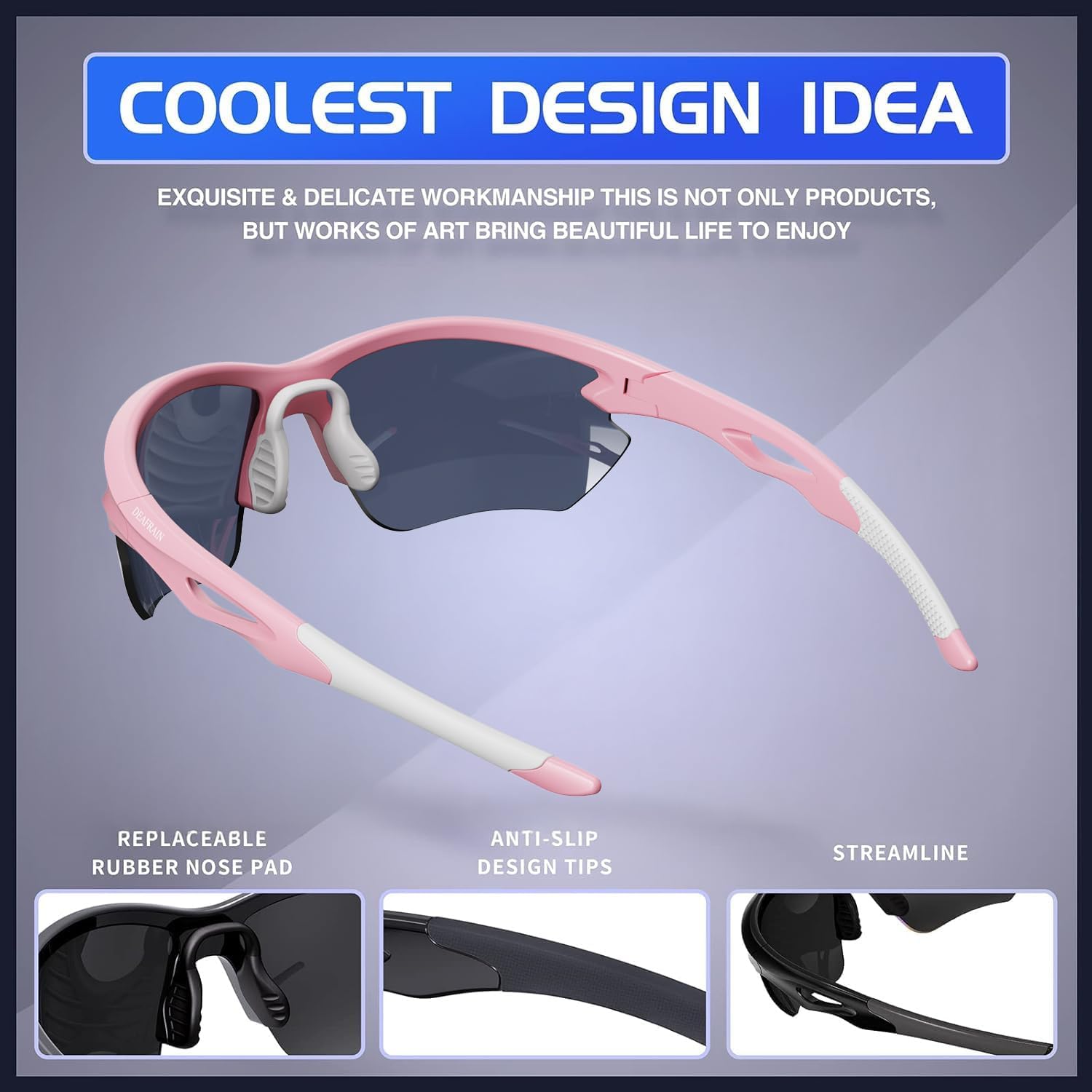 【ANTI-SLIP ARMS AND NOSE PADS】 The Women Sport sunglasses is a layer of soft rubber that wrap around the arms and have memory rubber nose pads. Even if you sweat a lot, the sunglasses will not drop down.