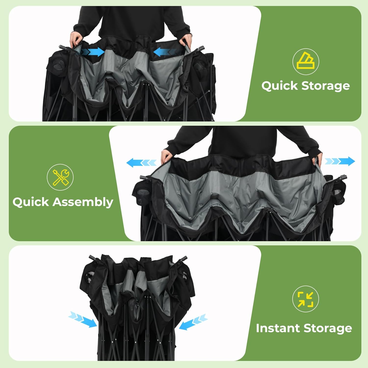 Comfort Experience: This three-person camping chair features a high-back design with a thickened seat cushion that perfectly contours to your back and lumbar curve. It lets you enjoy a gently enveloping comfort outdoors, so you can sit for extended periods without fatigue.