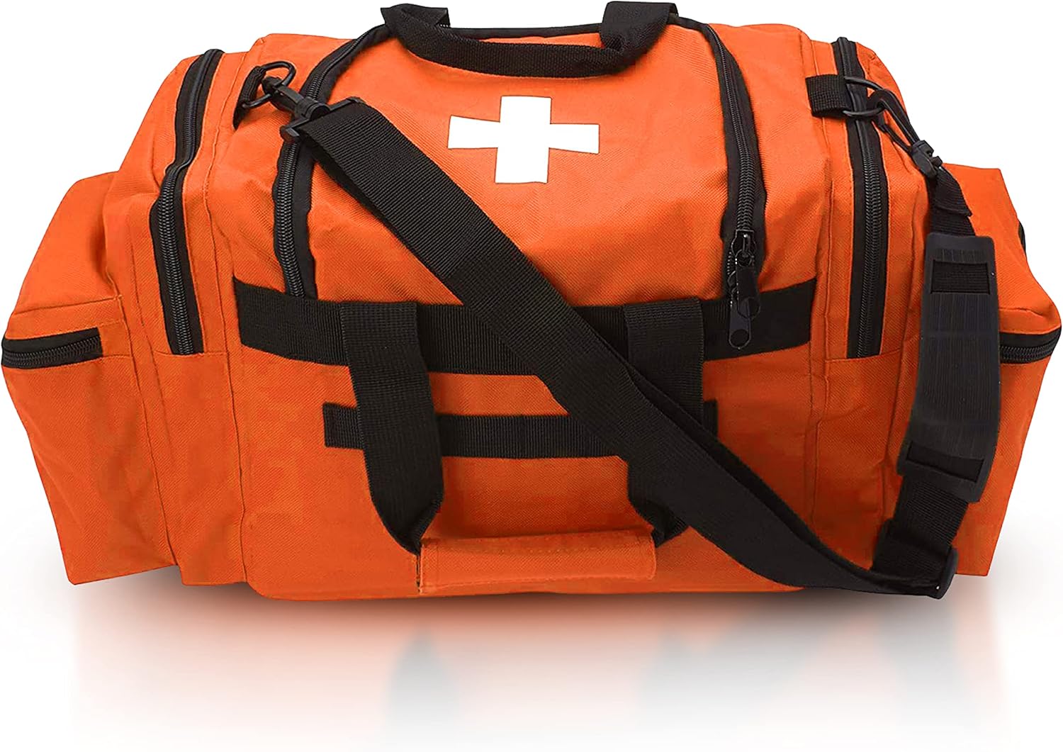 Professional Jumbo EMT Trauma Bag (22″ x 11″ x 11.5″). Maximize preparedness. Holds a comprehensive kit. 8 exterior pockets & large main compartment for quick access. Durable, water-resistant. Ideal for first responders, paramedics, and fire departments. Rugged carrier the pros trust! Its trim.