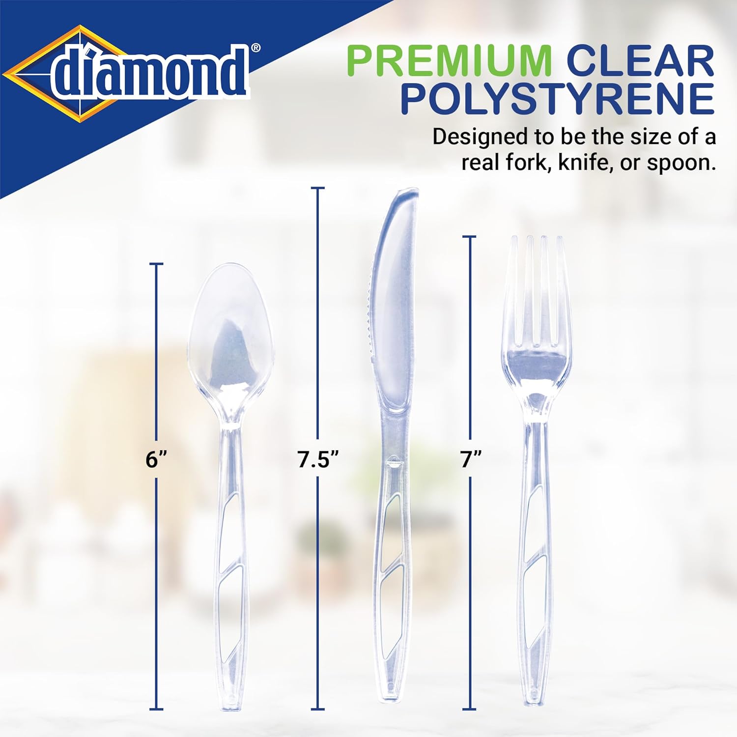 Crystal clear cutlery matches any table setting – great for parties.