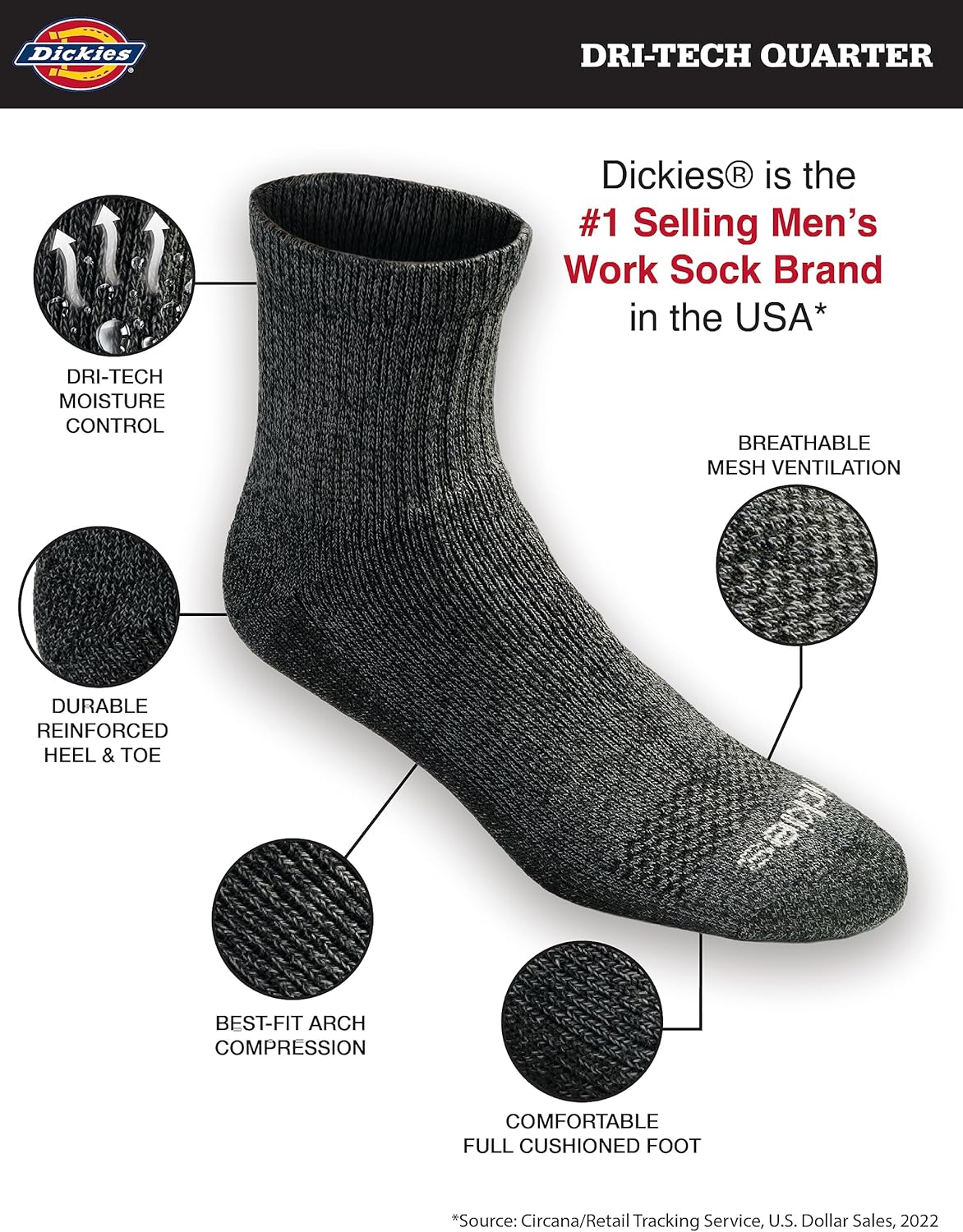 For Over 95 Years Dickies has been making hard-duty work products built to stand up to whatever life throws at you. Dickies Work Socks are built with purpose to deliver superior comfort and performance on and off the job.