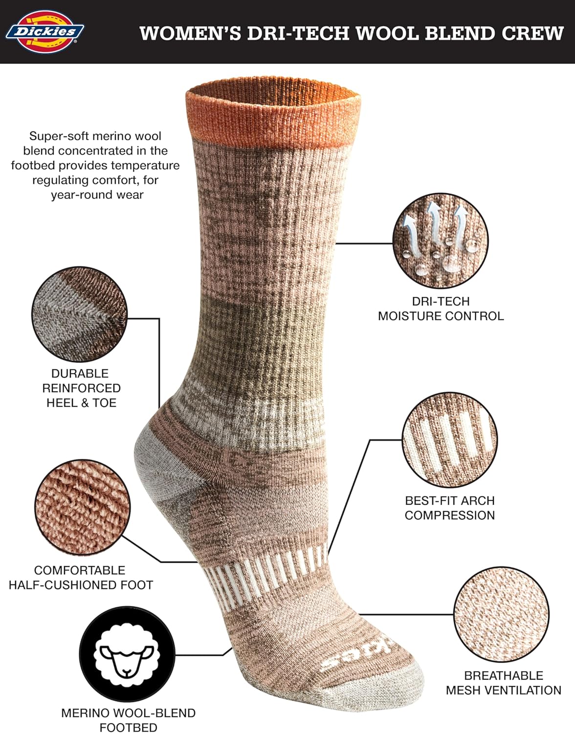 🥾 Dickies womens Dri-tech Merino Wool-blend Moisture Control Crew Socks (5 Pairs) — Review, Key Features & Current Price
