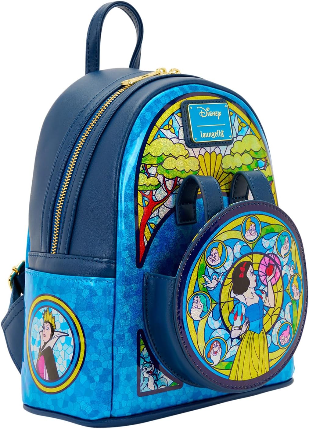 From Disney’s Snow White, this mini-backpack features a beautiful Snow White-themed stained glass motif!